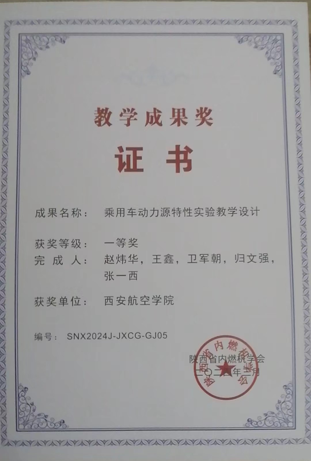 伟德官网荣获陕西省内燃机学会教学成果...