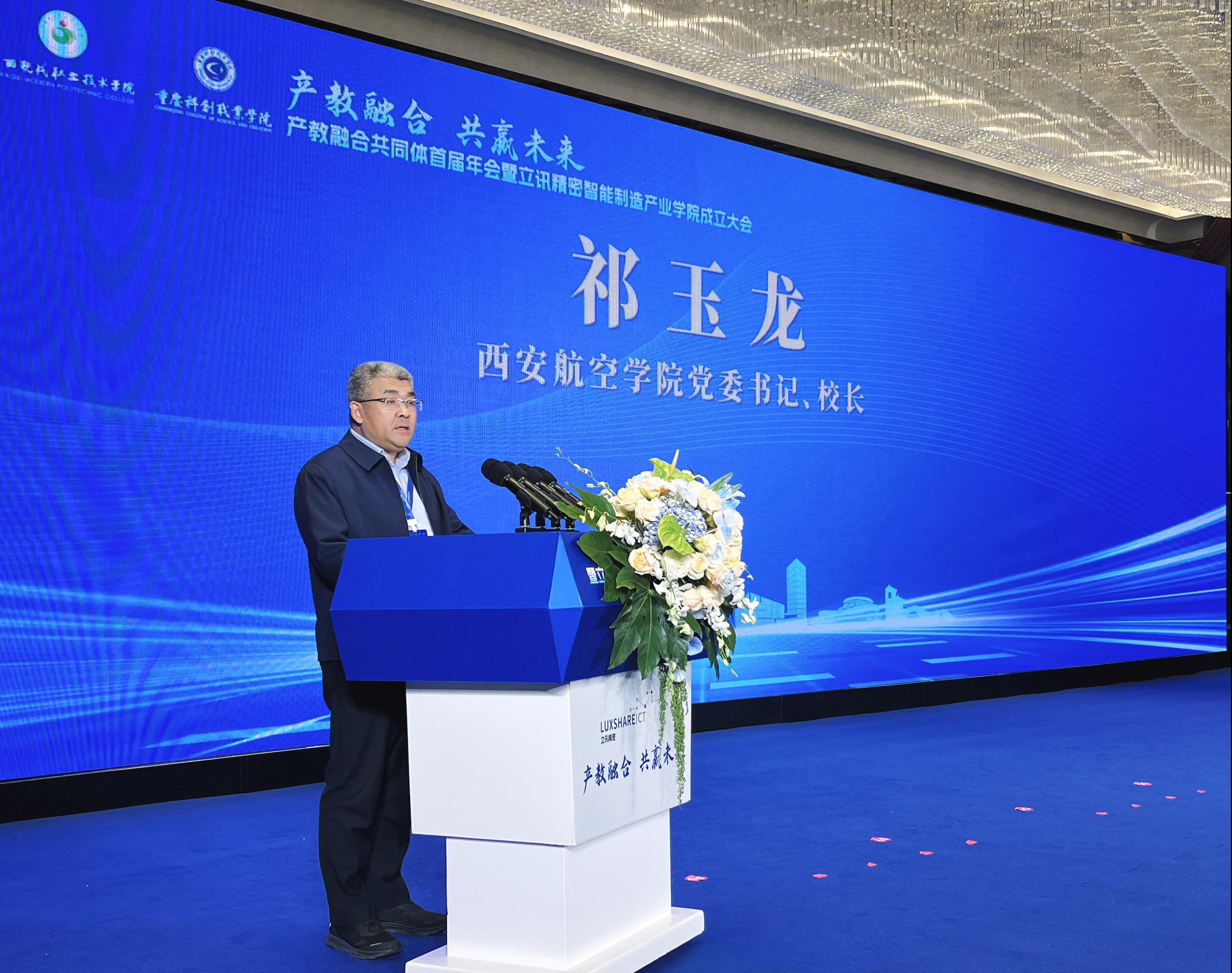 祁玉龙代表学校向立讯精密工业股份有限公司一直以来对学校发展的支持表示衷心感谢。他指出,我国正处在产业结构调整的关键期,需要培养高素质应用型人才,推动传统产业向高端化、智能化、绿色化转型发展。党的二十届三中全会对深化教育、科技、人才体制机制一体改革作出了重要部署,把深化产教融合,实现教育链、人才链与产业链、创新链的有机衔接,作为培养应用型人才的战略与路径,实现校企协同育人。深化与立讯精密的校企合作,为学校应用型人才培养注入了新的活力,也为双方深化产教融合、共筑高质量发展新高地搭建了更为坚实的平台,相信通过双方的共同努力,一定能够取得更加丰硕的成果。