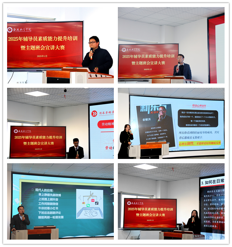 参赛选手围绕党的二十届三中全会精神和习近平总书记有关高等教育的重要论述,充分利用PPT、短视频等,从劳动教育、就业择业、网络安全、资助奖励、心理健康、民族团结等六个主题出发,选取切入点设计班会内容,多思维、多角度、多形式地展示班会教育思路。宣讲过程紧张有序,亮点纷呈,为现场观众呈现了一堂堂意义深刻的主题班会,也展示了伟德官网辅导员认真严谨的工作态度和昂扬向上的精神风貌。