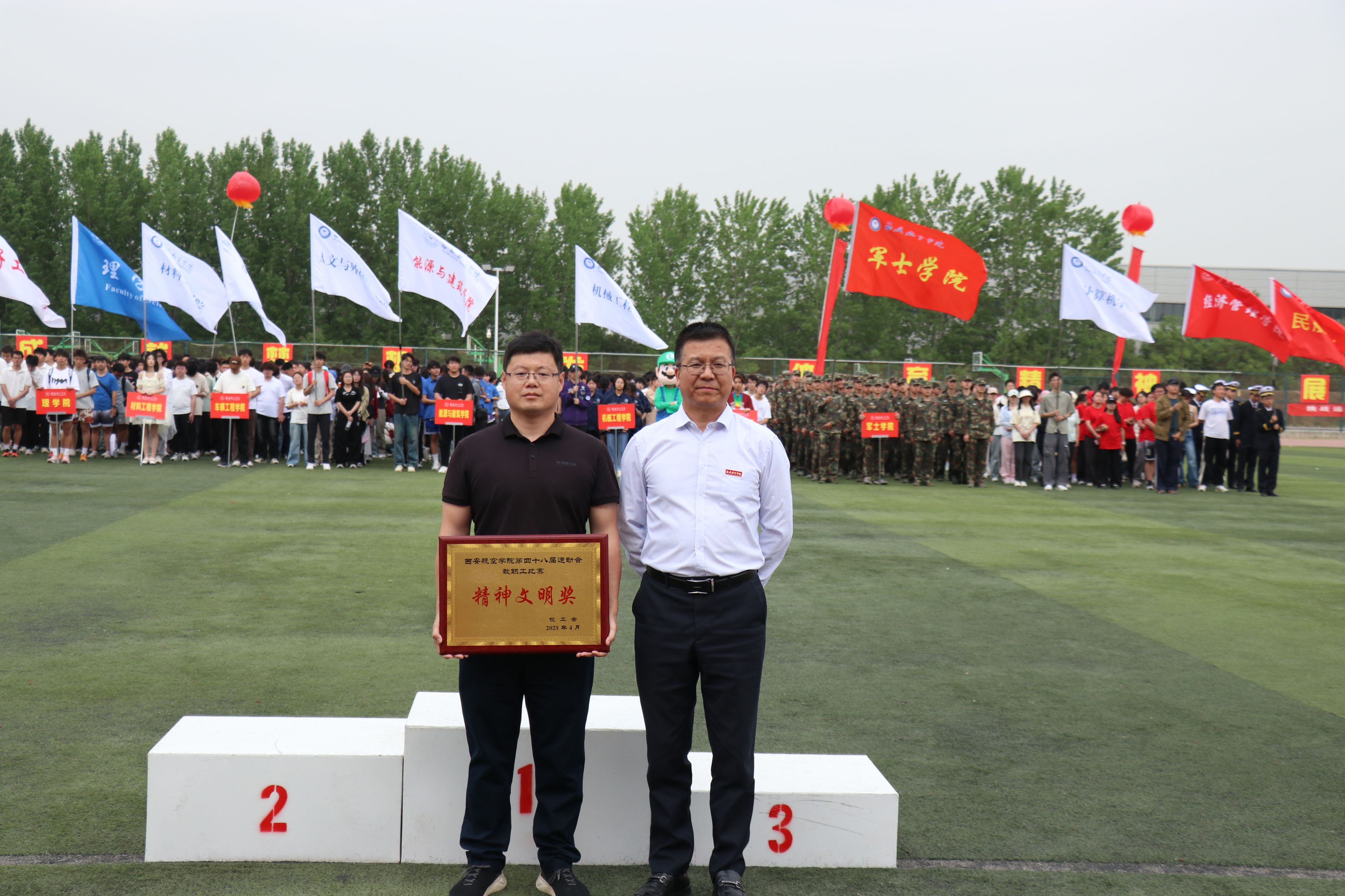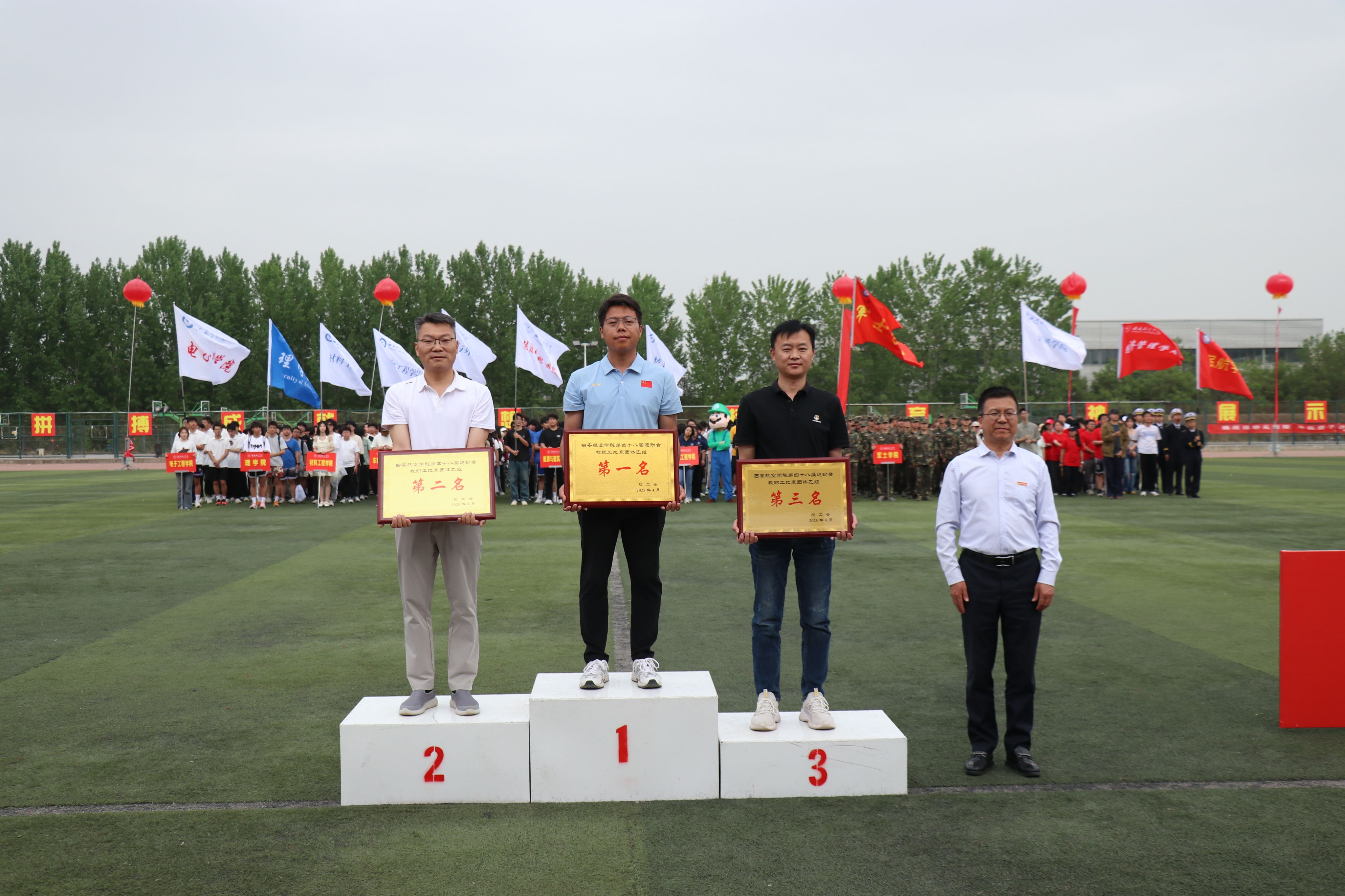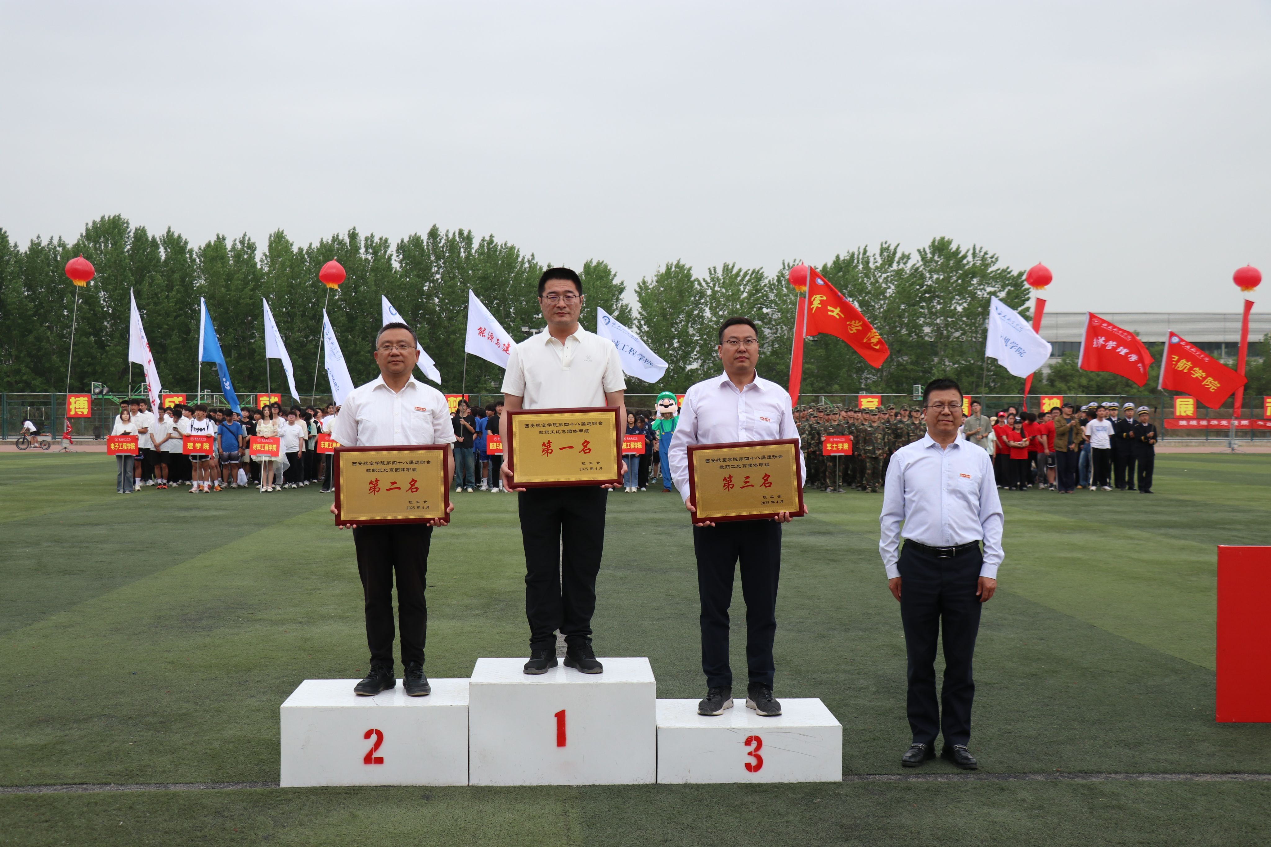 此次田径运动会是在学校行政主体北迁阎良校区之后的第一次重大文化体育活动,意义深远。运动会的完美收官,不仅为学校的体育文化建设注入了新活力,激发了大家投身体育运动的热情与活力,更是激励着广大教职工以更加饱满的精神状态和斗志昂扬的精神风貌,围绕学校“13810”中心工作做出更大贡献。(文/校工会 杨琳 图/新媒体中心学生 审核/陈冬梅)