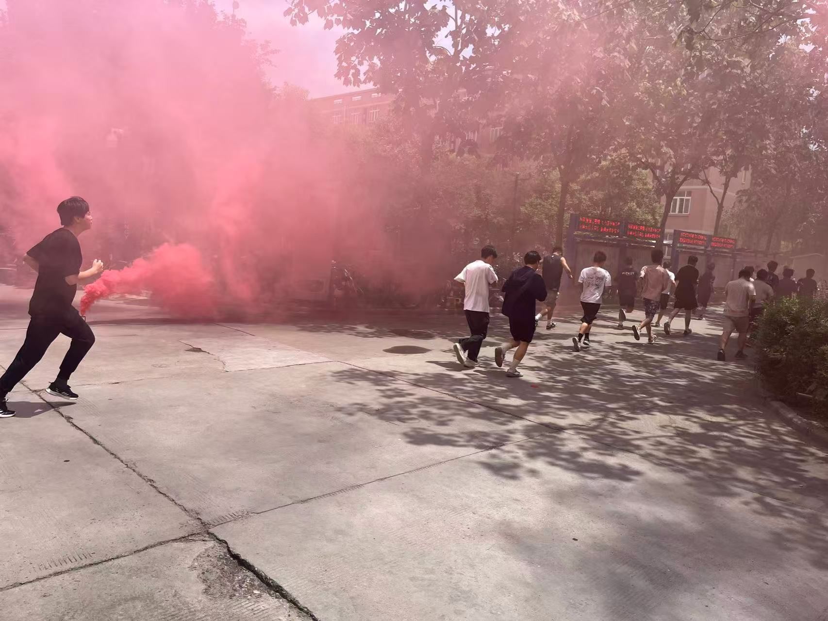 13时整,随着总指挥一声令下,演练正式启动。演练模拟学生公寓5号楼发生火情,红色烟雾弹在三层窗口腾起,烟雾迅速弥漫走廊。现场指挥组立即启动三级应急响应,疏散组吹响急促的哨声,引导员组织师生沿安全通道有序撤离。与此同时,医疗救护组在集结点搭建临时救护站,对模拟吸入性损伤、骨折的1名“伤员”实施心肺复苏、夹板固定等急救措施。保卫处灭火组身着防火服突入火场,用水枪压制火势。13时05分,增援的消防车抵达现场,消防员与校内应急队形成“内外夹击”之势,15分钟后成功控制“火情”。