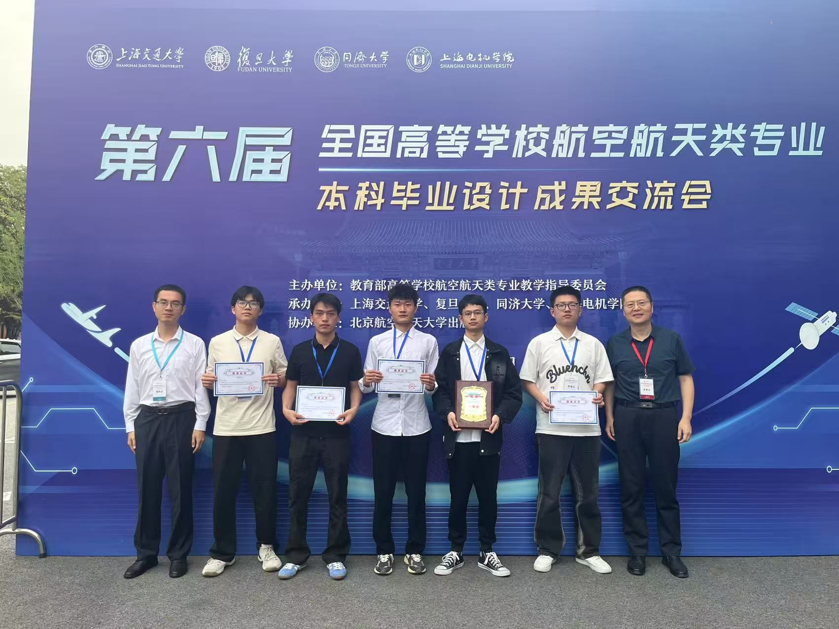 2025年5月23日至25日,由教育部高等学校航空航天类专业教学指导委员会主办,上海交通大学、复旦大学、同济大学、上海电机学院共同承办的“第六届全国高等学校航空航天类专业本科毕业设计成果交流会”在上海顺利举行。本届交流会以“强化基础,突出实践,科教融通,勇于创新”为理念,以“落实立德树人根本任务,协力培养空天报国人才”为目标,吸引了全国多所高校的航空航天类专业师生参与。伟德bv国际体育飞行器学院院长董彦非、教师赵慧带队参加此次会议,伟德官网学子在毕业设计成果展示中表现优异,斩获1项一等奖、1项二等奖及3项优秀奖,充分展现了学院在航空航天类专业人才培养方面的扎实成效。