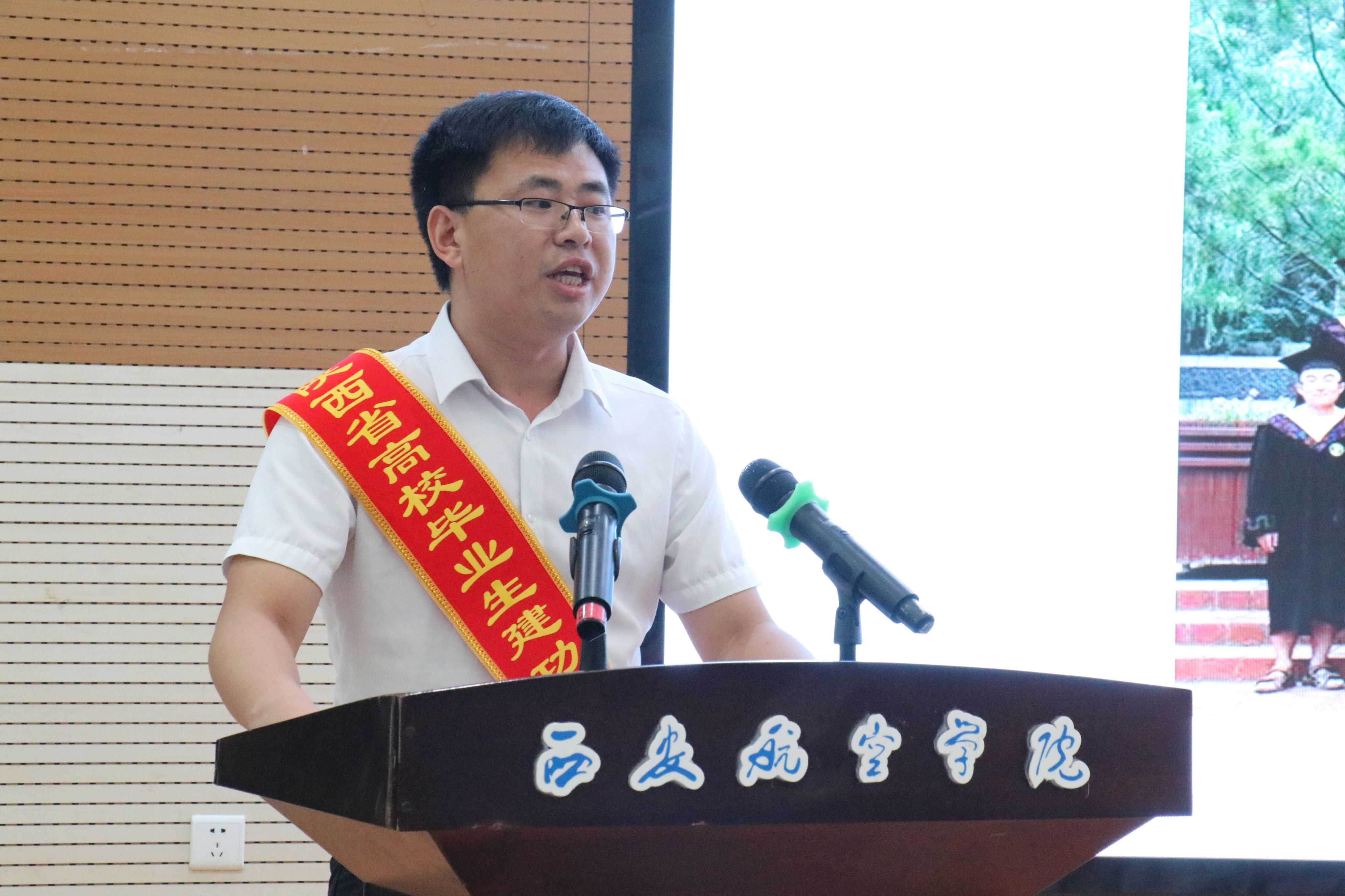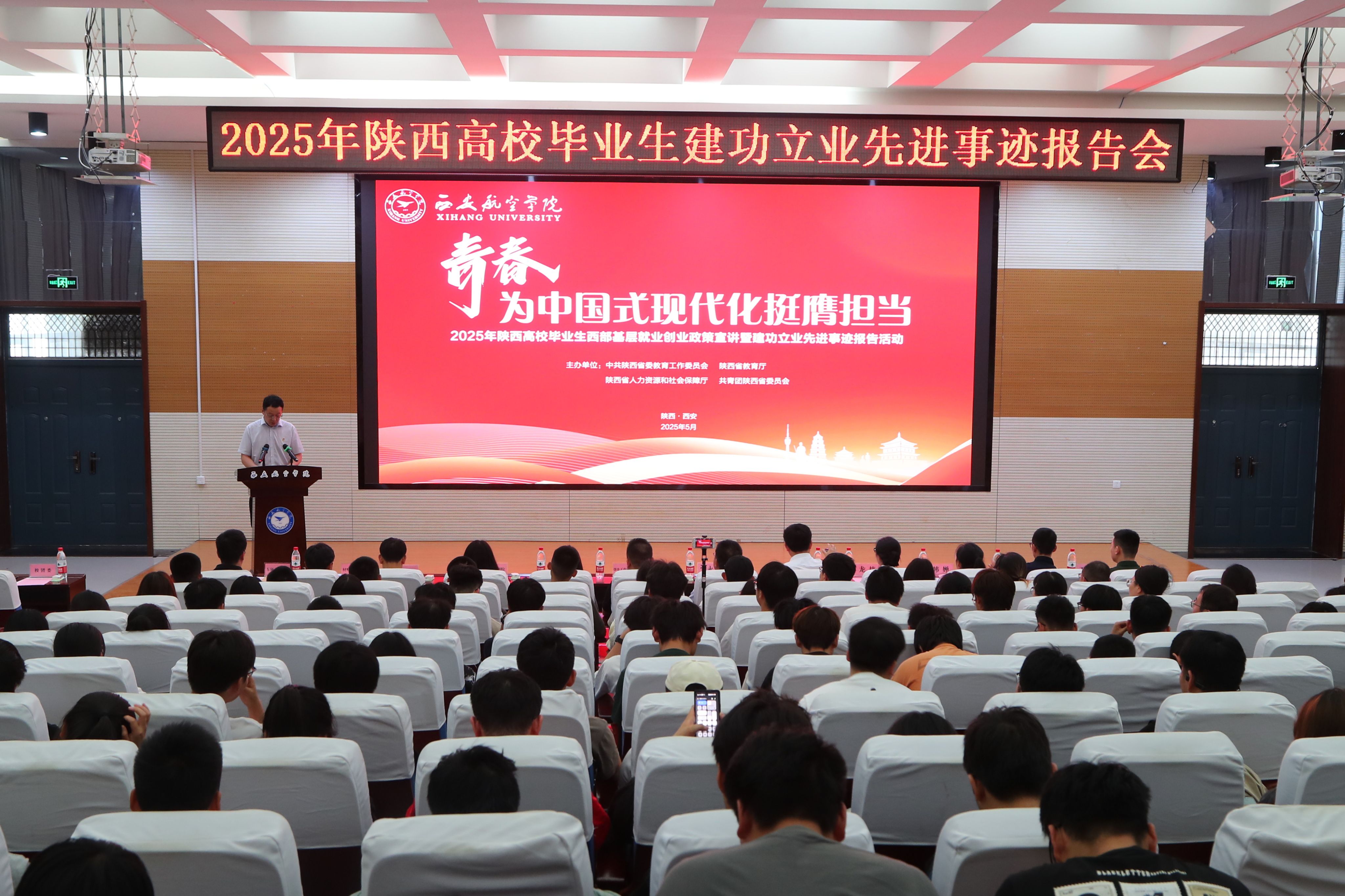 为全面贯彻党的二十大精神,深入贯彻习近平总书记关于青年工作的重要思想和关于教育的重要论述,充分发挥我省高校优秀毕业生扎根基层、报效祖国、服务人民的典型示范作用,深化共青团服务和促进大学生就业行动,5月28日,由省教育工委、省教育厅等联合主办、伟德官网承办的“青春为中国式现代化挺膺担当”2025年陕西高校毕业生西部基层就业创业政策宣讲暨建功立业先进事迹报告会伟德bv国际体育专场在阎良校区报告厅隆重举行。党委副书记宁永录,党委宣传部、学生工作部(处)、校团委等部门负责人、阎良校区各二级学院党总支书记、团总支书记、学校第十二期“青马班”学员及学生代表共350余人参加了报告会。报告会由校团委书记米嘉琪主持。