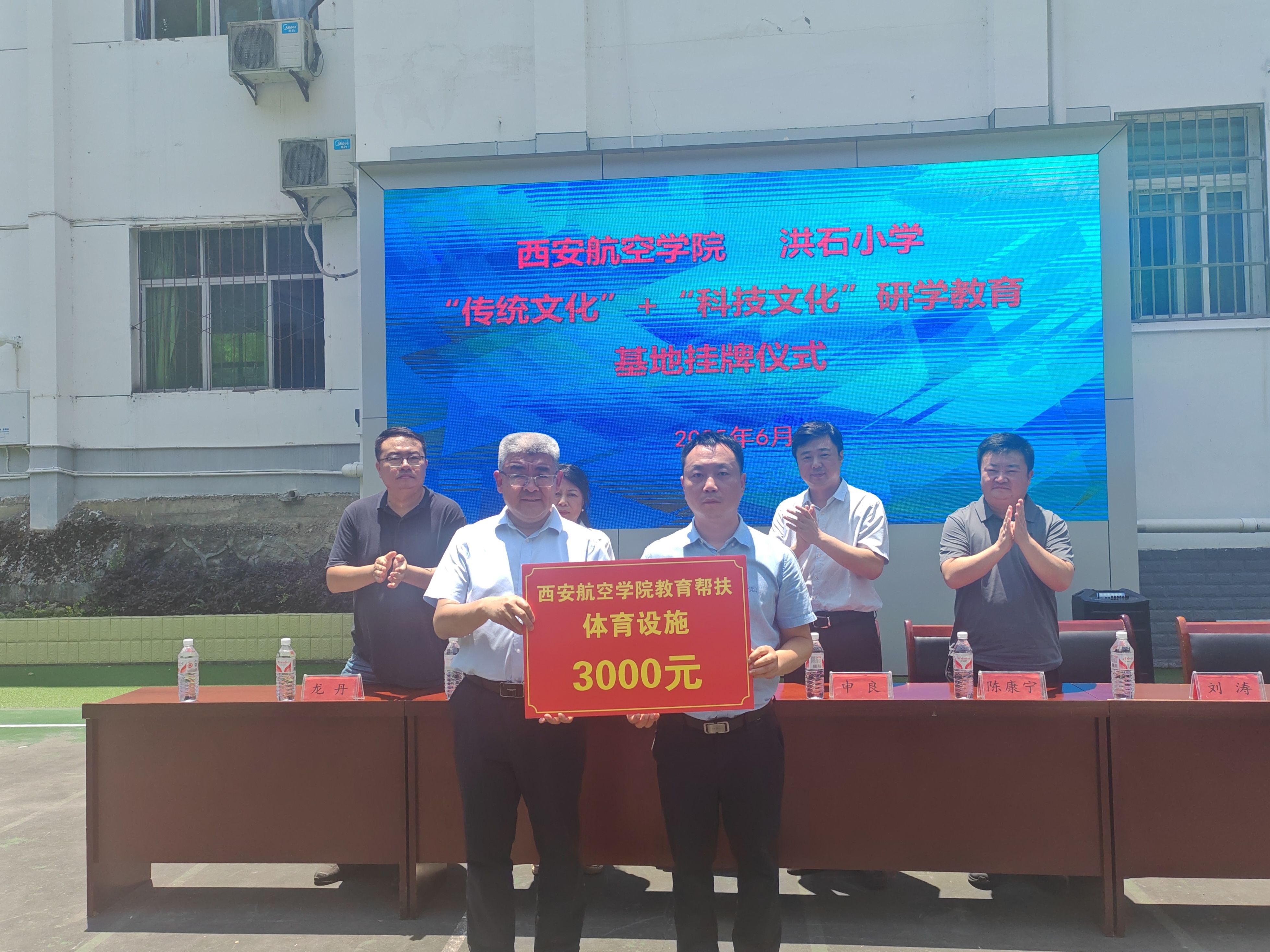仪式上,祁玉龙代表学校向洪石小学授予了“传统文化”+“科技文化”研学教育基地牌匾,捐赠了由伟德官网体育部帮扶的2套羽毛球教学设施。