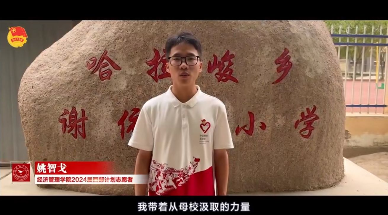 仪式上,往届西部计划志愿者通过视频寄语即将出征的学弟学妹,分享工作感受,畅谈成长收获,讲述扎根西部、服务基层的亲身经历,并对母校送上了生日祝福。