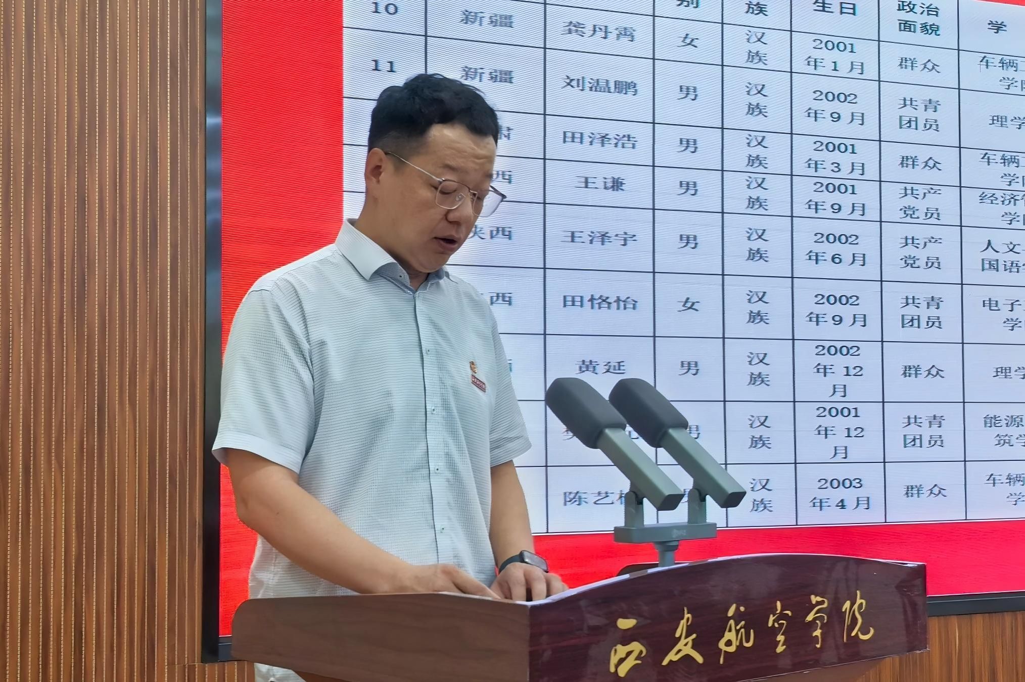 在庄严肃穆的国歌声后,校团委书记米嘉琪介绍了学校2025年西部计划招募和选派工作的开展情况。他表示,学校党委高度重视西部计划志愿者的选拔和培养工作,校团委严格按照相关遴选程序,择优选派宋星龙等18位同学投身到西藏、新疆、甘肃等西部地区的建设中去。