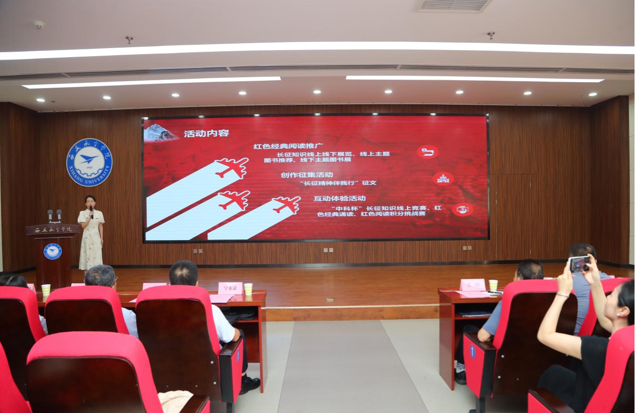 闭幕式结束后,举办了“追随红军足迹,重温红色经典—纪念中央红军长征到达陕北90周年”主题活动启动仪式。活动现场,“书香航苑”阅读推广人赫夏紫薇发布活动倡议,介绍了活动内容,号召全体师生共同踏上这段重温历史的阅读之旅,在阅读中感悟长征精神,在参与中传承革命传统,在实践中坚定理想信念。