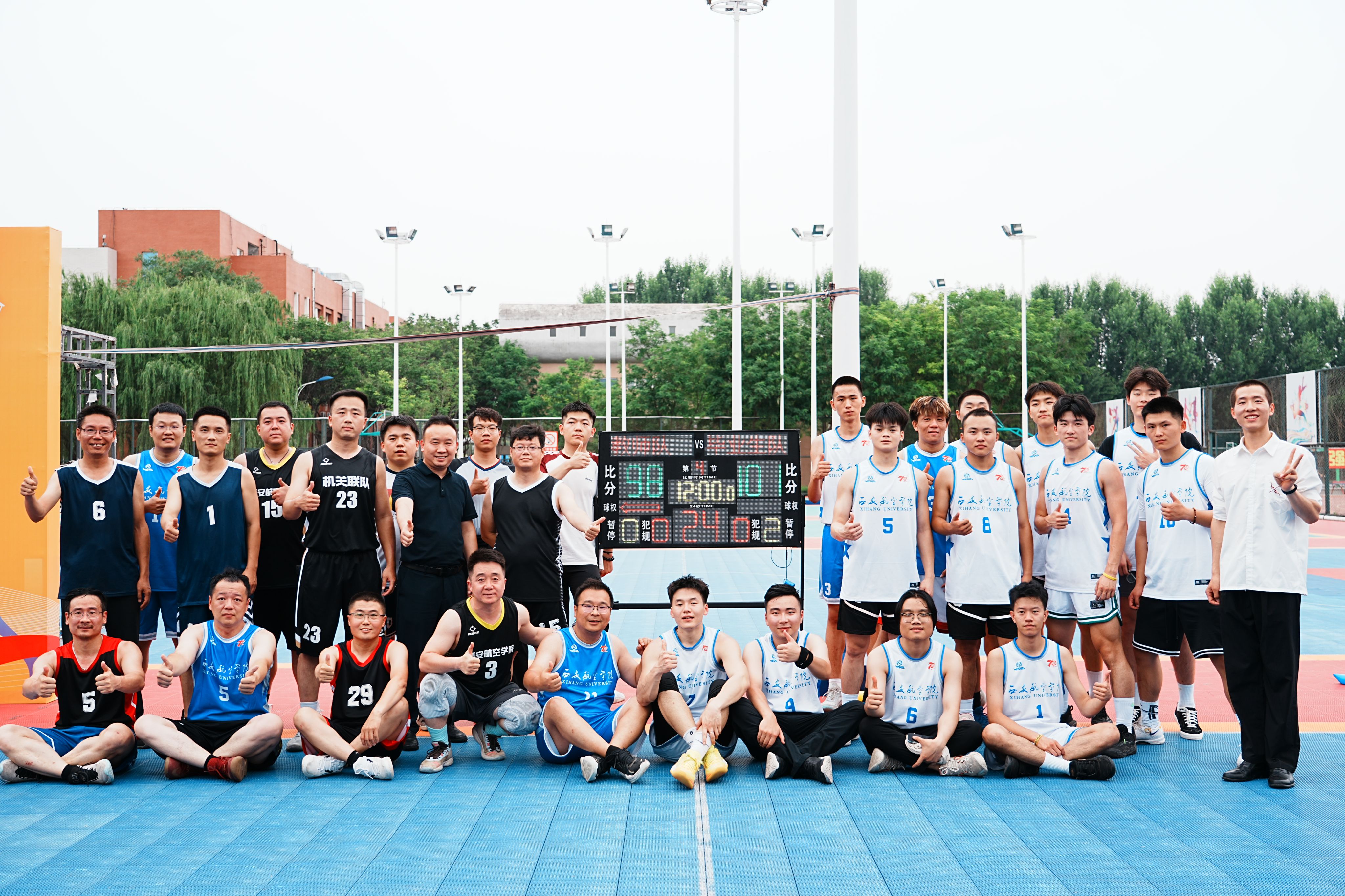 比赛在民族舞蹈《迎风起舞》和歌曲《直到世界尽头》中拉开序幕。比赛过程中,双方球员你来我往,互不相让,比分交替领先。毕业生代表队的同学们精神饱满、斗志昂扬,他们凭借出色的个人技术和场上活力,屡屡快攻得分。教师代表队的老师们同样不甘示弱,凭借丰富的经验,稳扎稳打,不断取分。经过激烈的角逐,最终毕业生代表队以101:98战胜教师代表队。