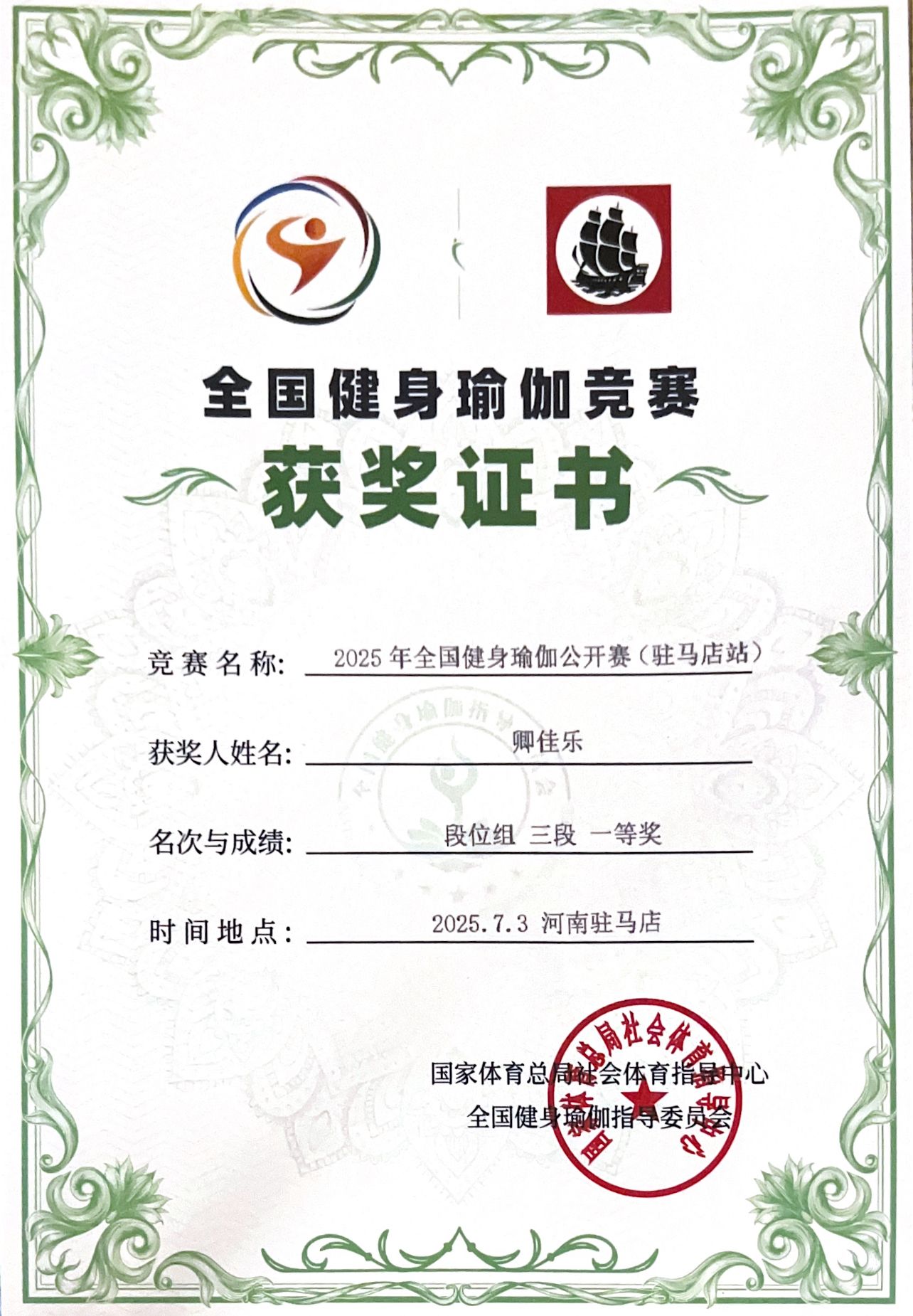 伟德官网由体育部主任李然担任领队,教师刘楠、杨帆担任教练,带领伟德官网健身瑜伽代表队参赛。经过同台竞技,伟德官网经管学院物流管理223C卿佳乐凭借精湛的技艺和稳定的发挥,一举摘得三段一等奖桂冠;民航学院航空服务222班冯咪同学则以出色的表现,荣膺四段二等奖殊荣;伟德官网荣获“优秀团队奖”。