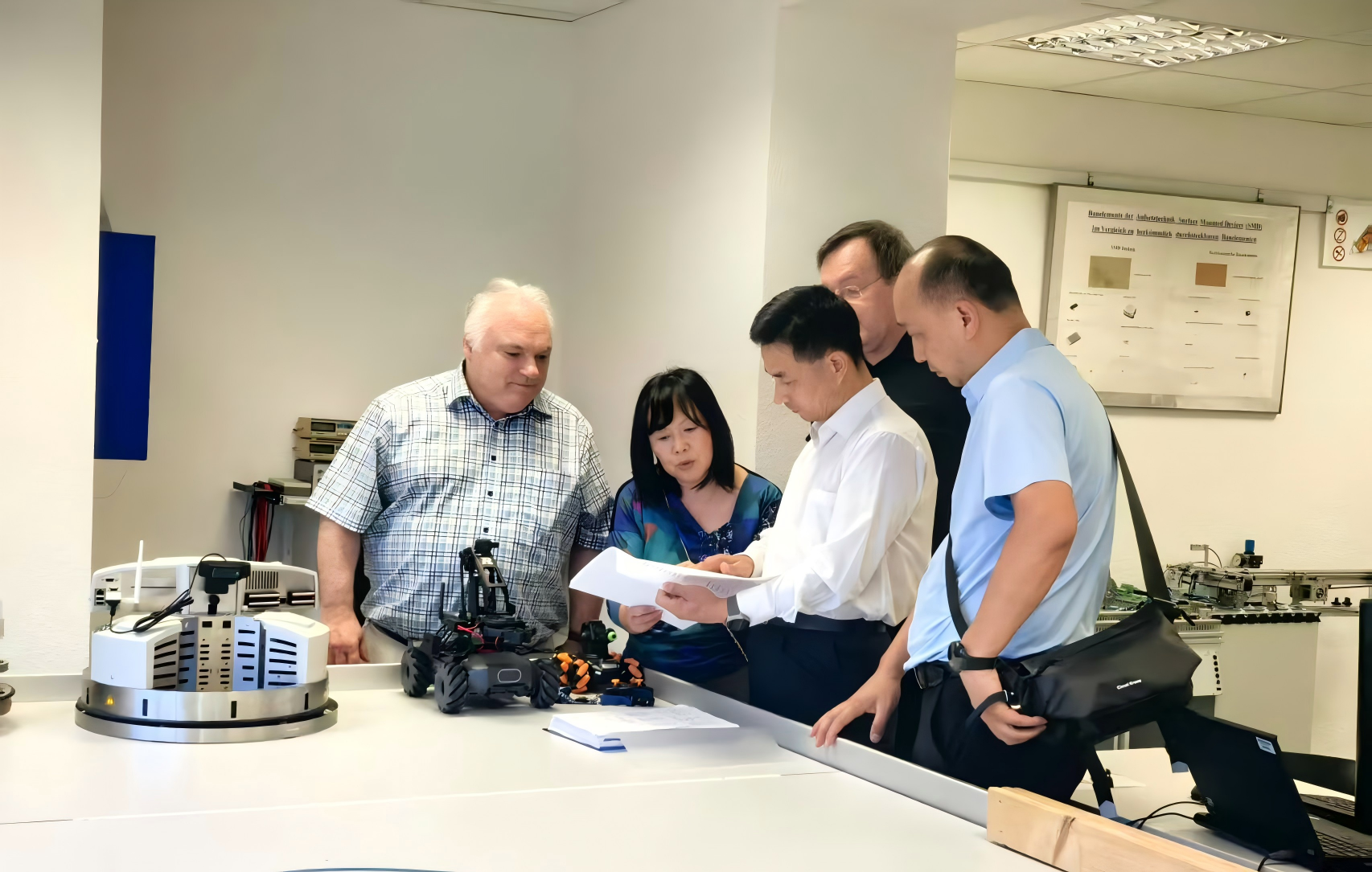 考察团与杜伊斯堡CAS语言学校校长Dirk Scholten等就教学改革、语言教学方法等进行了交流。并与在德语言学校学生进行了交流。访问了北黑森应用技术大学,双方计划加强项目宣传,拟建立奖励机制支持优秀学生互访,并就机器人实验室、电气工程等领域的科研合作达成共识。