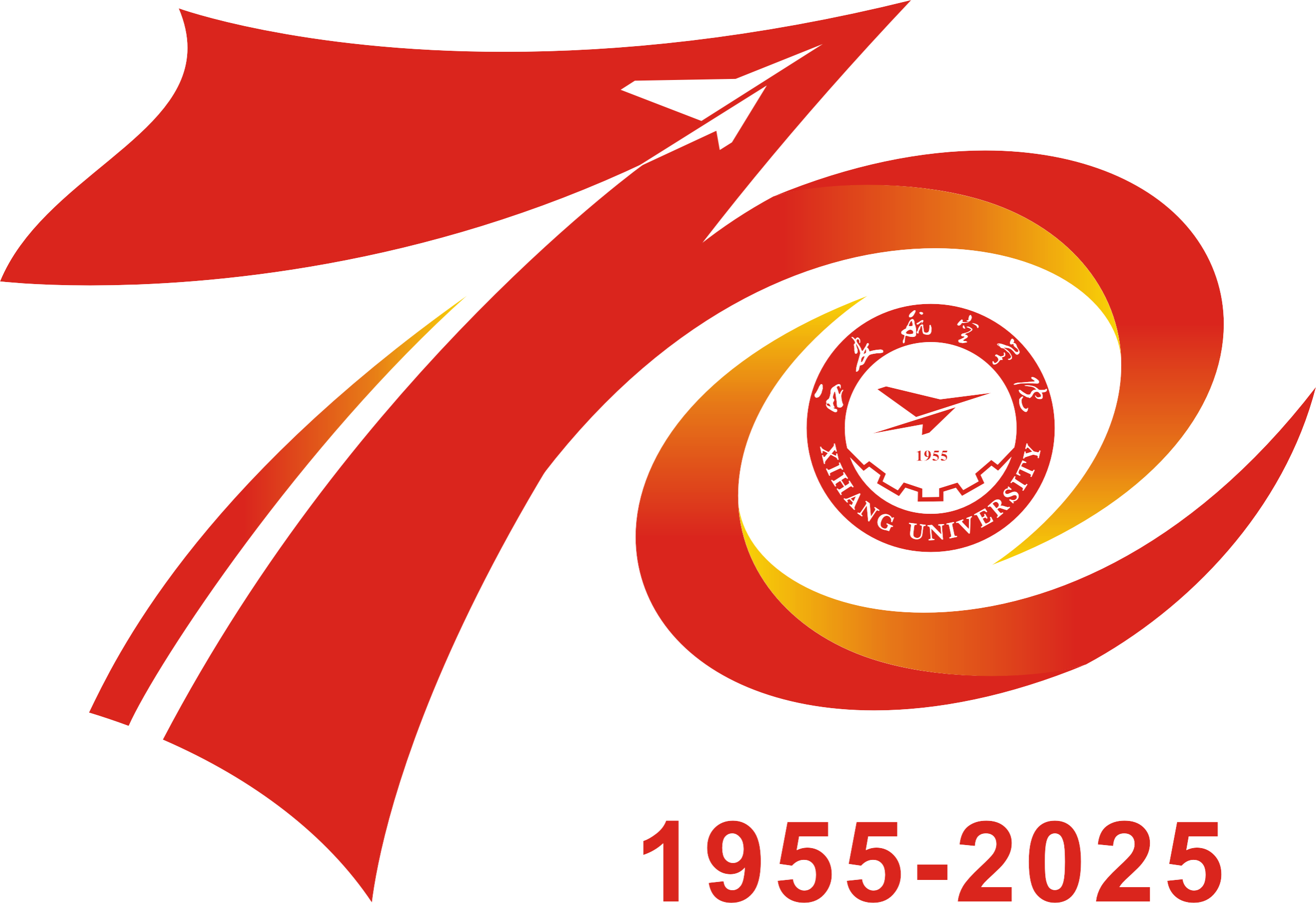 校庆标识:本标识以数字“70”为设计元素,经艺术化、有机地融入飞行器、飞行轨迹、彩带、旗帜、校徽、数字 1955-2025 等视觉形象,充分体现出西航 70 年校庆主题与形象特征。