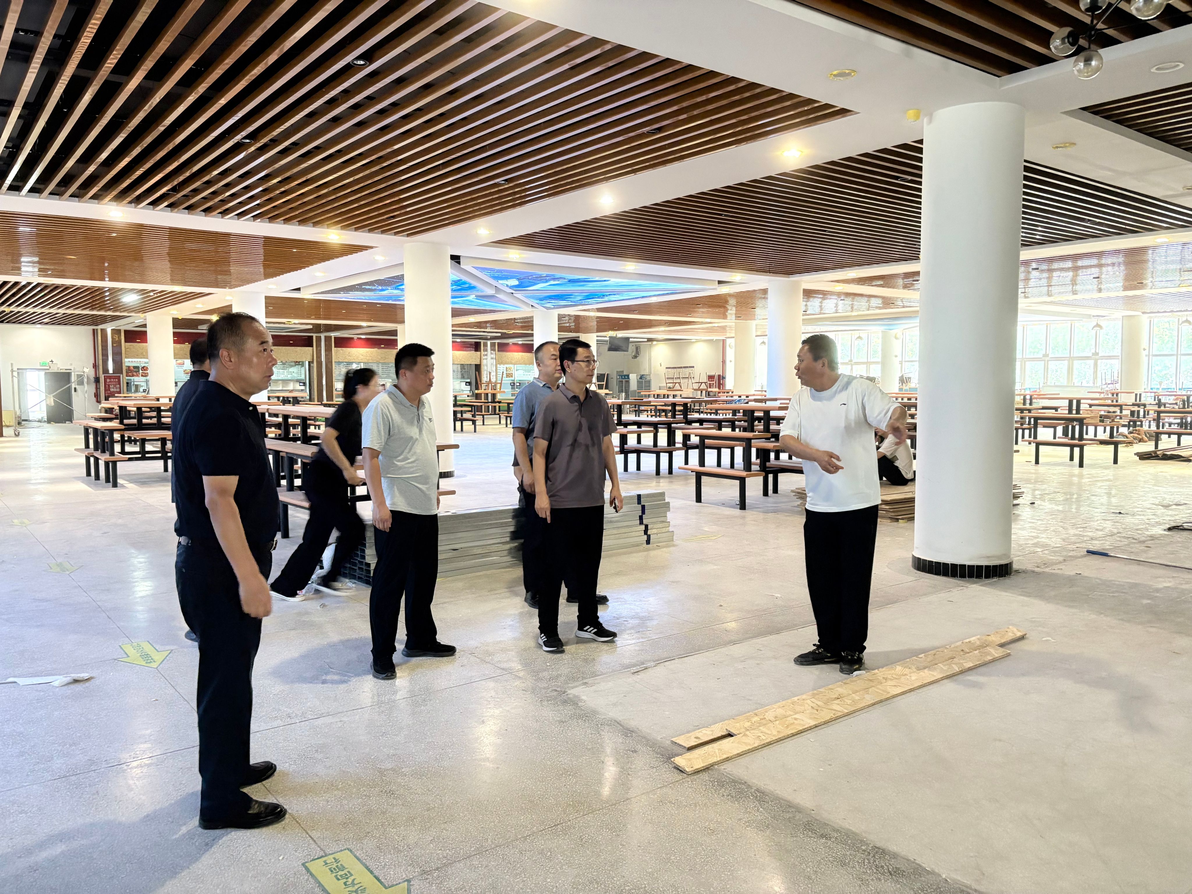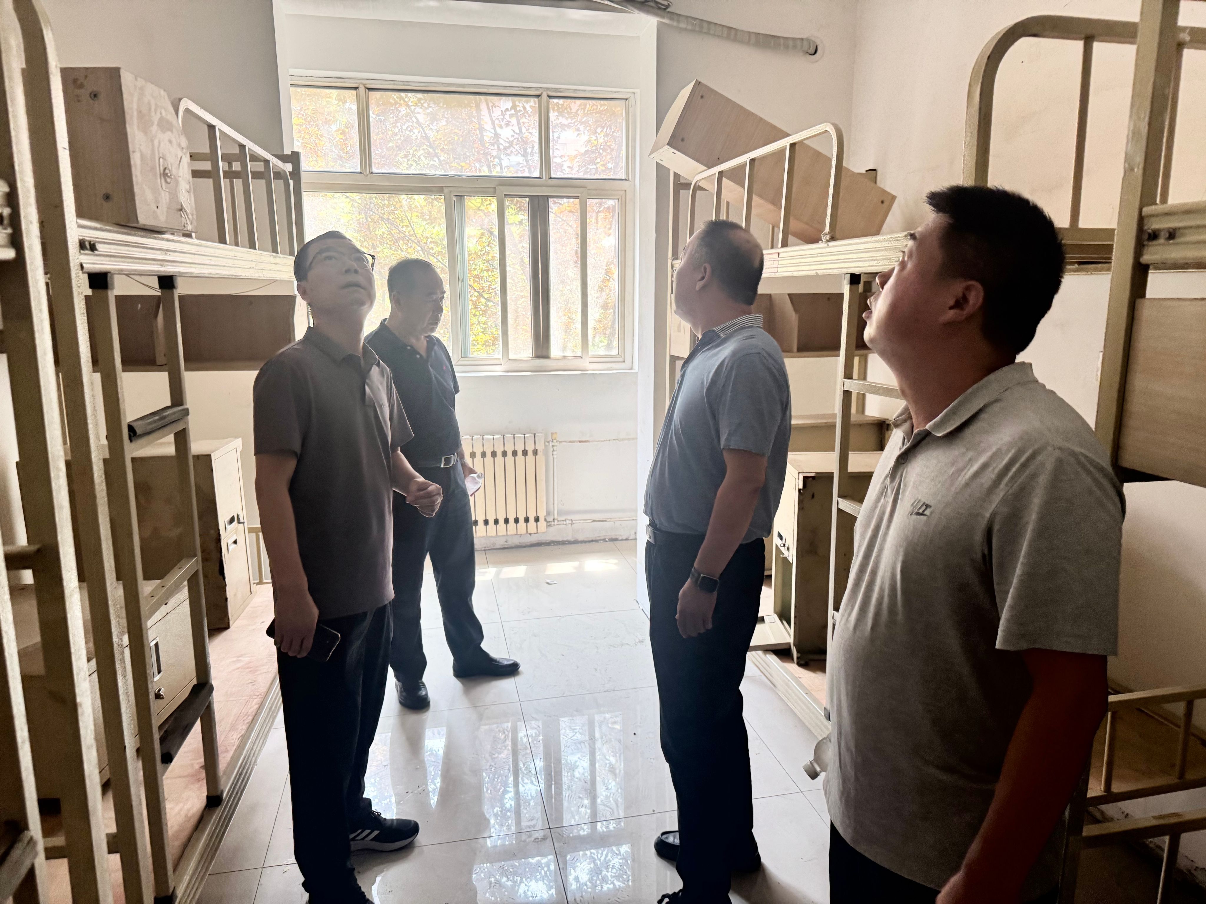李永刚带队先后深入阎良校区第二餐厅一楼外包和二楼自营装修改造、屋顶光伏建设项目、2025年新生公寓粉刷、维修项目、校训石设立、南大门及周边配套建设项目等施工现场,实地查看项目推进情况,围绕施工管理规范执行、进度节点落实时效、工程质量达标、临时用电规范操作以及安全管理措施等方面进行了全面细致的检查,并有针对性地给予指导,要求各项工程严格按工序施工,在施工过程中一旦发现问题,要做到现场处理、立行整改。