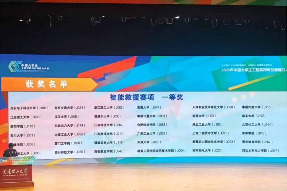 近日,伟德官网张康智、杨晓龙老师带队赴大连参加由大连理工大学、大连工业大学、大连交通大学联合承办的2025年中国大学生工程实践与创新能力大赛。伟德官网参赛作品在“智能+”赛道的智能救援赛项上荣获国家一等奖,获奖成绩取得历史性突破。