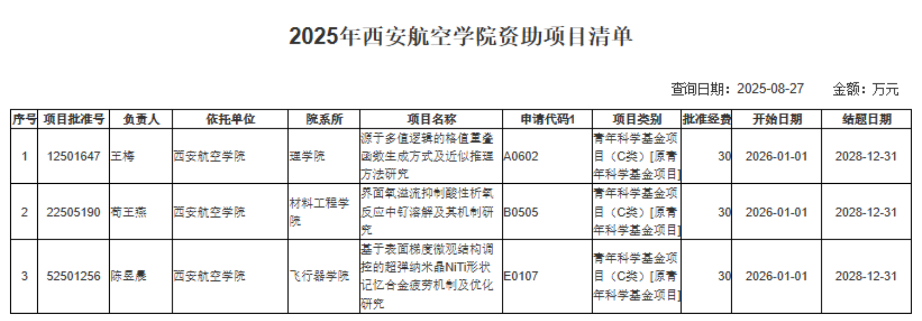国家自然科学基金是我国支持基础研究的重要渠道,其立项情况是衡量高校科研实力和创新能力的重要标尺。本次3项青年科学基金项目(C类)的获批,是申报教师潜心凝练科学问题、二级学院悉心组织培育、学校对青年科研人才发展重视和支持的结果。