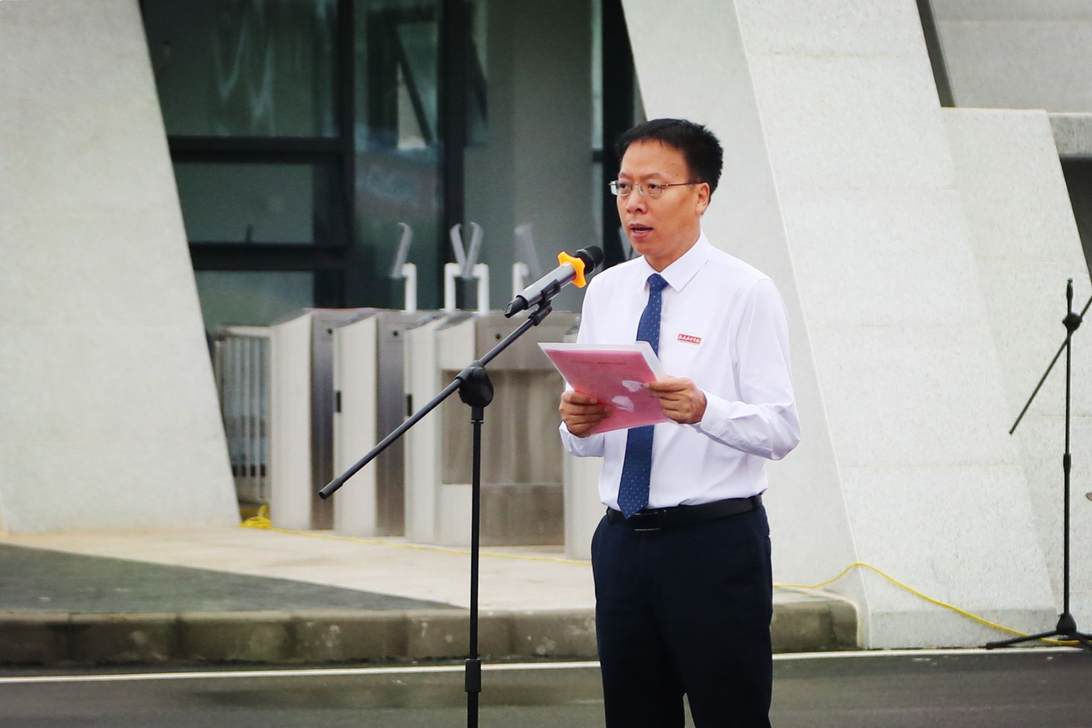 蒲永平在讲话中表示,南大门是学校阎良校区建设发展成果的点睛之笔,更是兼具标志性与精神内涵的校园新地标,彰显着“忠诚奉献、自强不息”的学校精神,传递着兼容并蓄、协同发展的开放办学胸怀,也承载着西航人深耕航空教育、逐梦高质量发展的坚定追求。他指出,南大门的启用是学校向航空城发出的协同之约,向全体师生发出的奋斗之约,向社会各界发出的开放之约,吹响了学校高质量发展的新号角。他希望,全校各单位、全体师生要以建设航空特色鲜明的高水平应用型大学为目标,持续推动阎良校区建设提质升级。要聚焦航空、低空经济等核心专业群,规划建设低空经济产教融合中心、航空高技能人才培训基地等。要把航空精神融入课堂,以逐梦蓝天、不负韶华的朝气,在不断学习、不断实践中练就过硬本领。他诚挚邀请社会各界朋友走进西航、了解西航,打造校企合作、产教融合、政校融通的典范,让航空城里的航空大学绽放更耀眼的光彩。