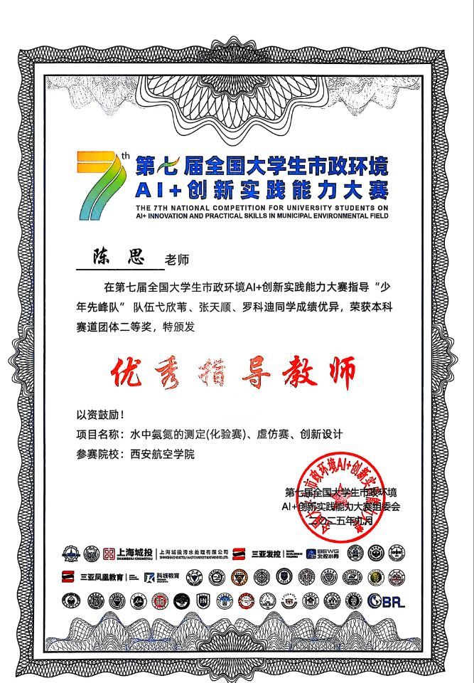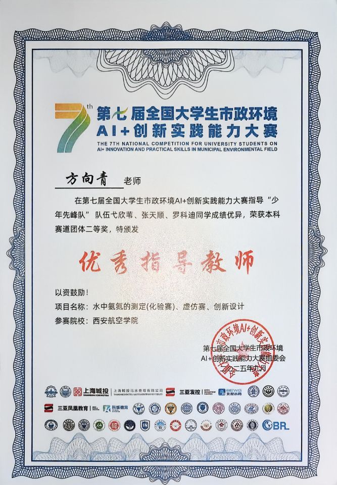 近日,第七届全国大学生市政环境AI+创新实践能力大赛全国总决赛在海南三亚圆满落幕。由伟德官网能源与建筑学院陈思、方向青老师指导,张天顺、弋欣苇、罗科迪三位同学组成少年先峰队,凭借扎实的专业基础、出色的创新能力和稳定的现场发挥,最终荣获全国总决赛二等奖。陈思、方向青老师获评“优秀指导教师”称号。