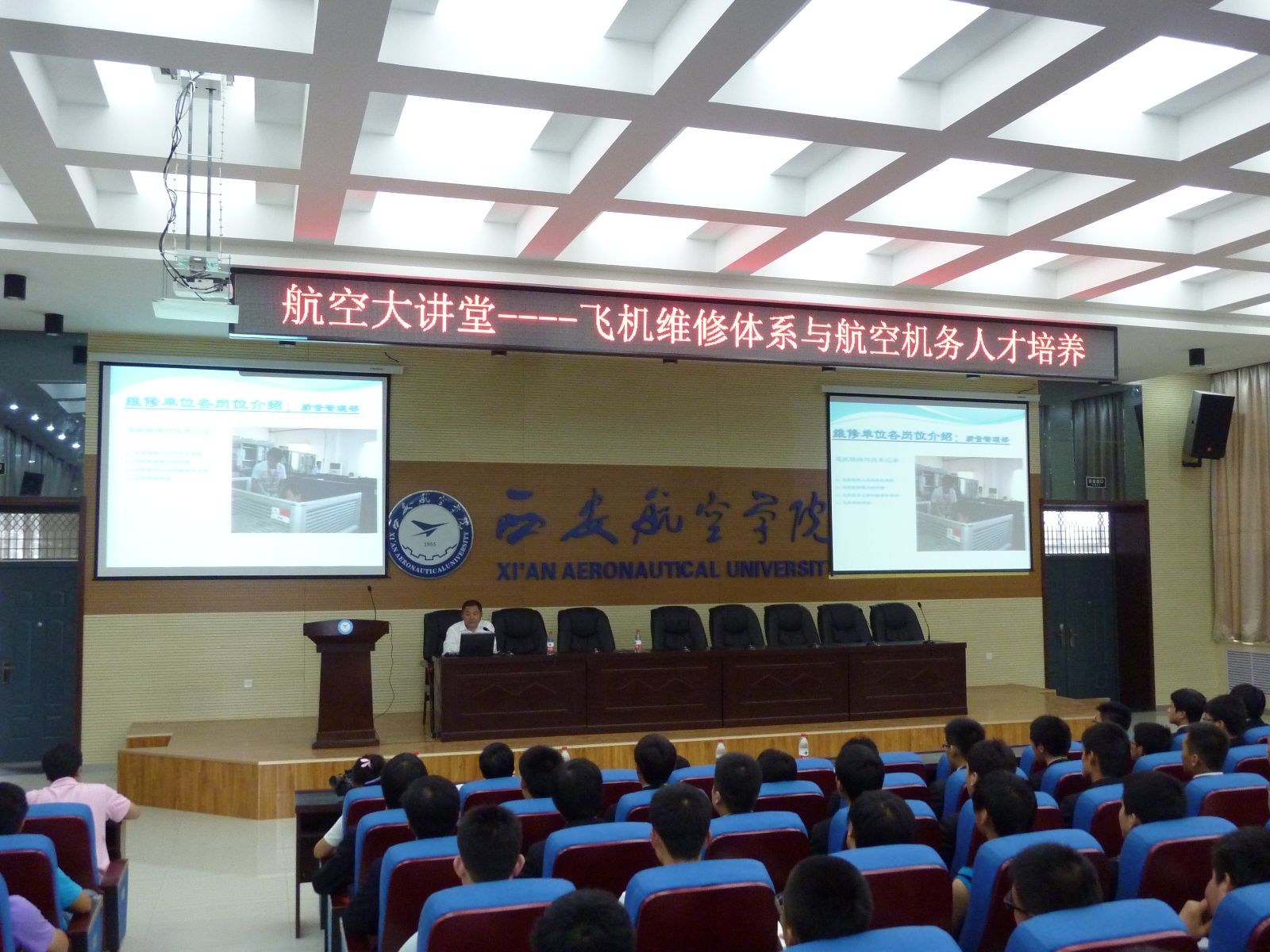 5月24日下午,由科技处和航空系共同举办的航空大讲堂“飞机维修体系与航空机务人才培养”在伟德官网阎良校区学术报告厅举行,本次学术报告由海航航空技术有限公司西北维修基地总监周贵敏主讲,航空系主任宋文学、党总支书记张耀虎、航空机电设备维修专业负责人余斌高及航空系相关专业学生近400人聆听了学术报告,报告会由宋文学主持。