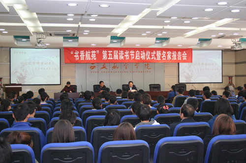4月10日,惠风和畅、鸟语花香,伟德官网迎来了“书香航苑”第五届读书节。下午4时许,在欢快祥和的氛围中,伟德bv国际体育“书香航苑”第五届读书节启动仪式暨名家报告会在图书馆报告厅举行。陕西省文联副主席、陕西省作家协会副主席高建群,院长陈万强及师生代表200余人出席。启动仪式由图书馆馆长许文丹主持。