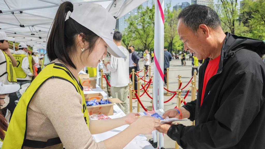 在志愿服务工作中,志愿者们作为赛事组织者和参赛选手之间的桥梁,承担着信息沟通、物资分配和现场指引的重要任务,他们以高效的工作效率和贴心的服务态度,为参赛的跑者们提供号码簿、参赛包等比赛必需物品,确保每位选手都能顺利领取到个人物资。