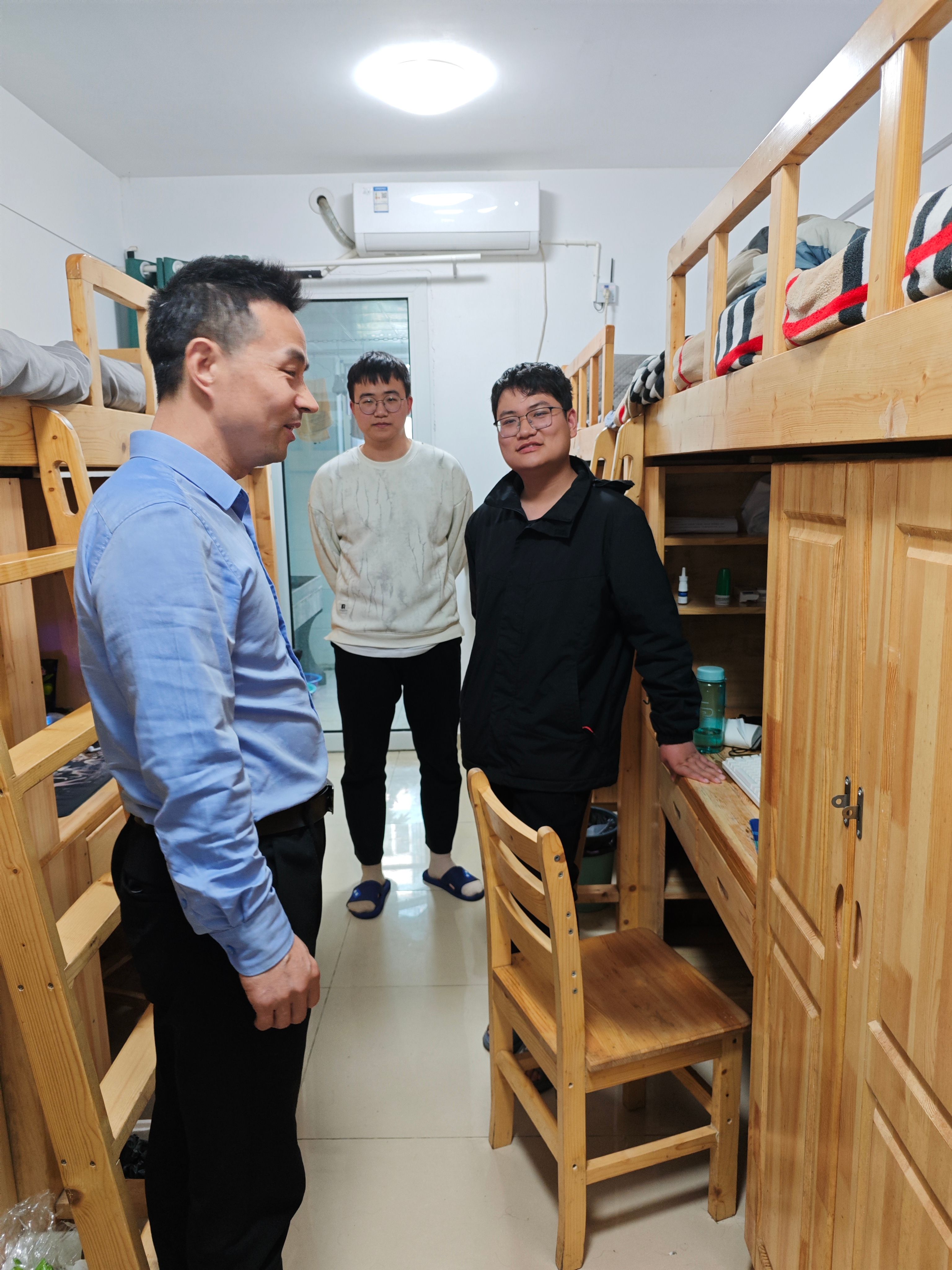 调研组重点走访了学生生活区。王永锋院长深入学生宿舍,细致了解学生的生活适应情况。他与伟德官网学生亲切交流,询问对当地气候、宿舍条件及饮食的适应情况。学生们表示已基本适应,并对院领导的关心表示感谢。王院长特别关注学生的作息安排与技能学习进度,鼓励他们主动向工程师导师请教,将精密加工工艺与课堂所学的机器人控制理论相结合,真正做到学以致用。