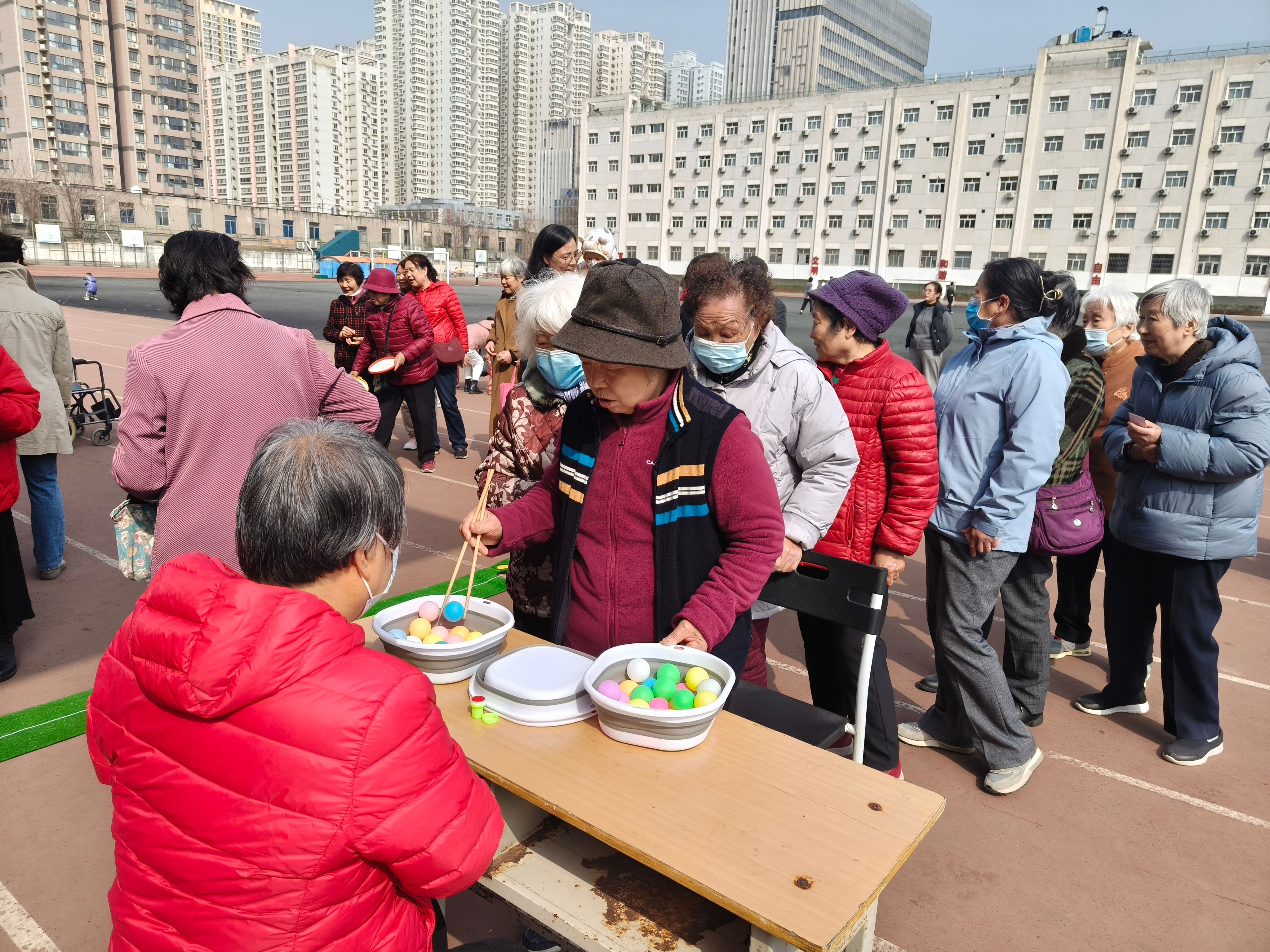 为积极营造建校七十周年氛围,丰富离退休教职工文化娱乐生活,3月7日,100余名离退休女职工欢聚在莲湖校区田径运动场,参加“美丽非凡,自成光芒”迎校庆三八女神节游艺活动。