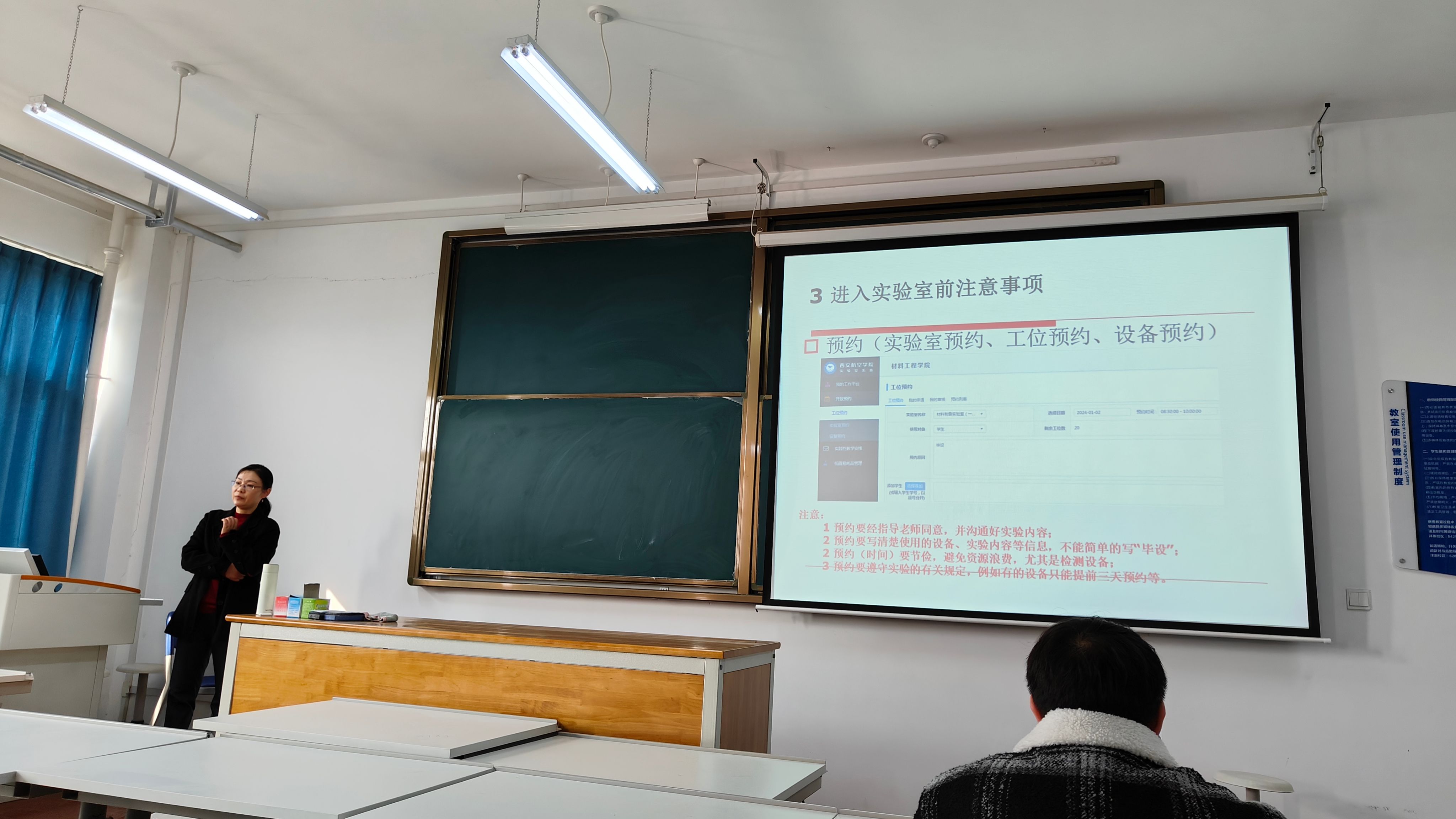 针对材料成型及控制工程、复合材料与工程和材料科学与工程三个专业在实验内容、设备使用和危险源方面存在的差异,实验中心教师首先从各专业出发,系统讲解了实验过程中的注意事项,重点强调了大型仪器设备在使用过程中的注意事项和遇到突发事件的处理方式。除此之外,实验中心教师分别介绍了实验室安全规章制度、实验室预约制度、实验室药品管理制度、实验室废液处置办法和消防器材的使用等,并与每位同学签订了安全承诺书。