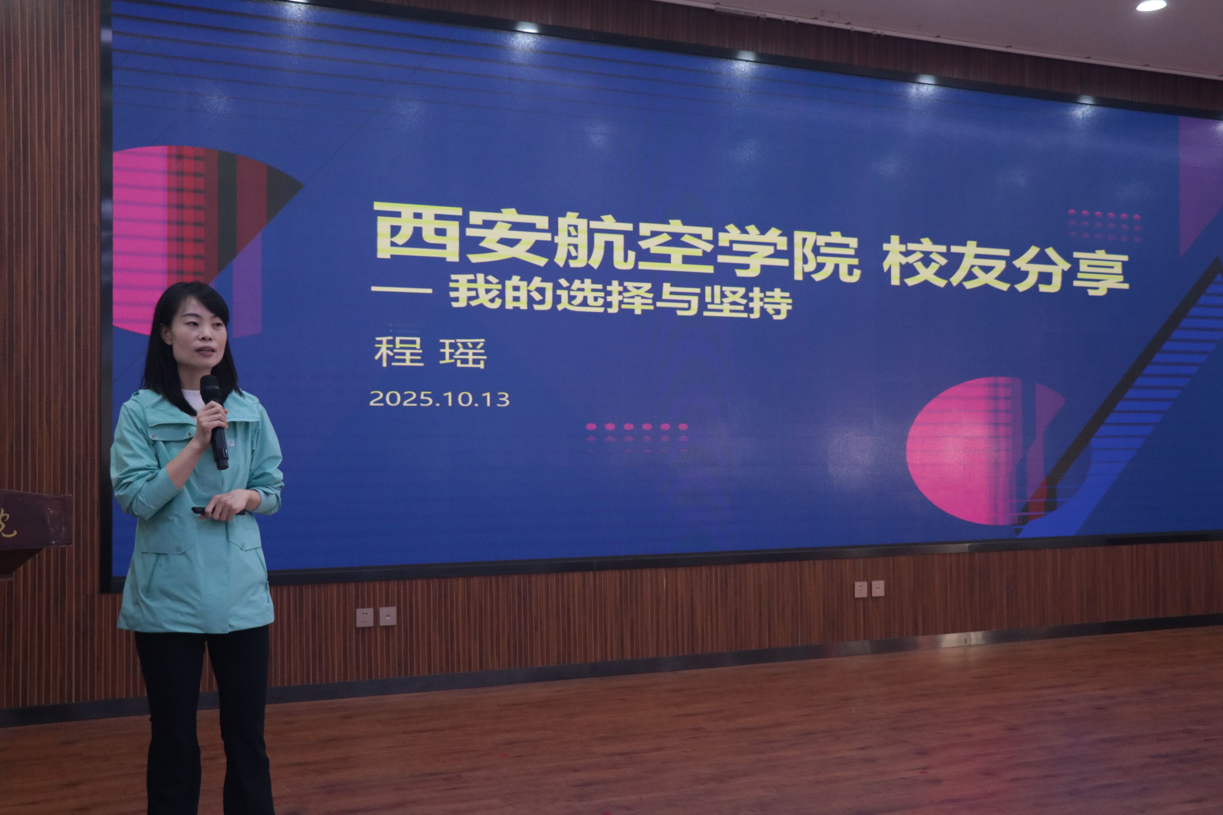 10月13日下午,低空管理与数字经济学院在莲湖校区图书馆报告厅举办优秀校友分享会,本次分享会是学校70周年校庆“校友校庆”活动的一部分。分享会邀请斐乐服饰有限公司西北区人力资源副总监程瑶(2009届物流管理专业校友)分享经验、交流心得。低空管理与数字经济学院党总支副书记班奕、2025级辅导员李金泽及学院2025级新生及部分毕业生参会。