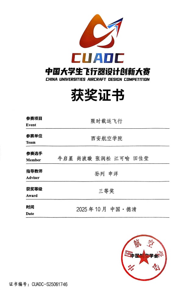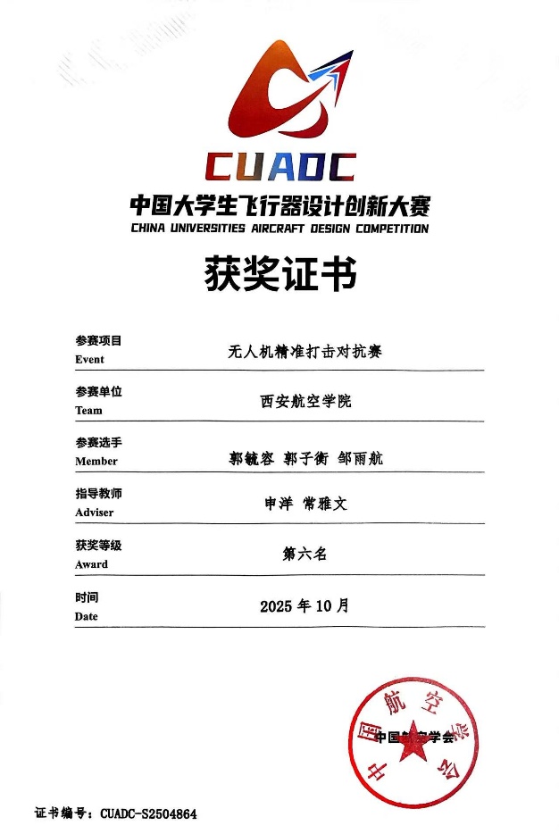中国国际飞行器设计挑战赛是融合科技创新、工程实践与团队协作的高水平赛事,对培养学生科技创新能力、助力低空经济发展意义重大。伟德官网将以此次获奖为契机,持续深化体教融合,推动学科实践与赛事育人深度结合,为社会输送更多高素质应用型人才。(文、图/飞行器学院(低空技术与工程学院) 申洋 审核/刘建强)