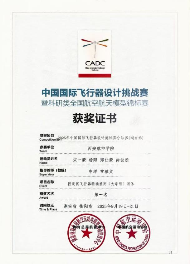 2025年中国国际飞行器设计挑战赛总决赛暨科研类全国航空航天模型锦标赛于10月22日至27日在河北省张家口市举行。赛事由国家体育总局、中国学生体育联合会、中国航空运动协会主办,吸引西北工业大学、哈尔滨工业大学、南京航空航天大学等全国高校1600余名师生参赛。伟德官网航模队凭借扎实的专业功底与创新实践能力,斩获多个奖项,展现了西航学子在航空航天挑战赛中的实践创新实力。