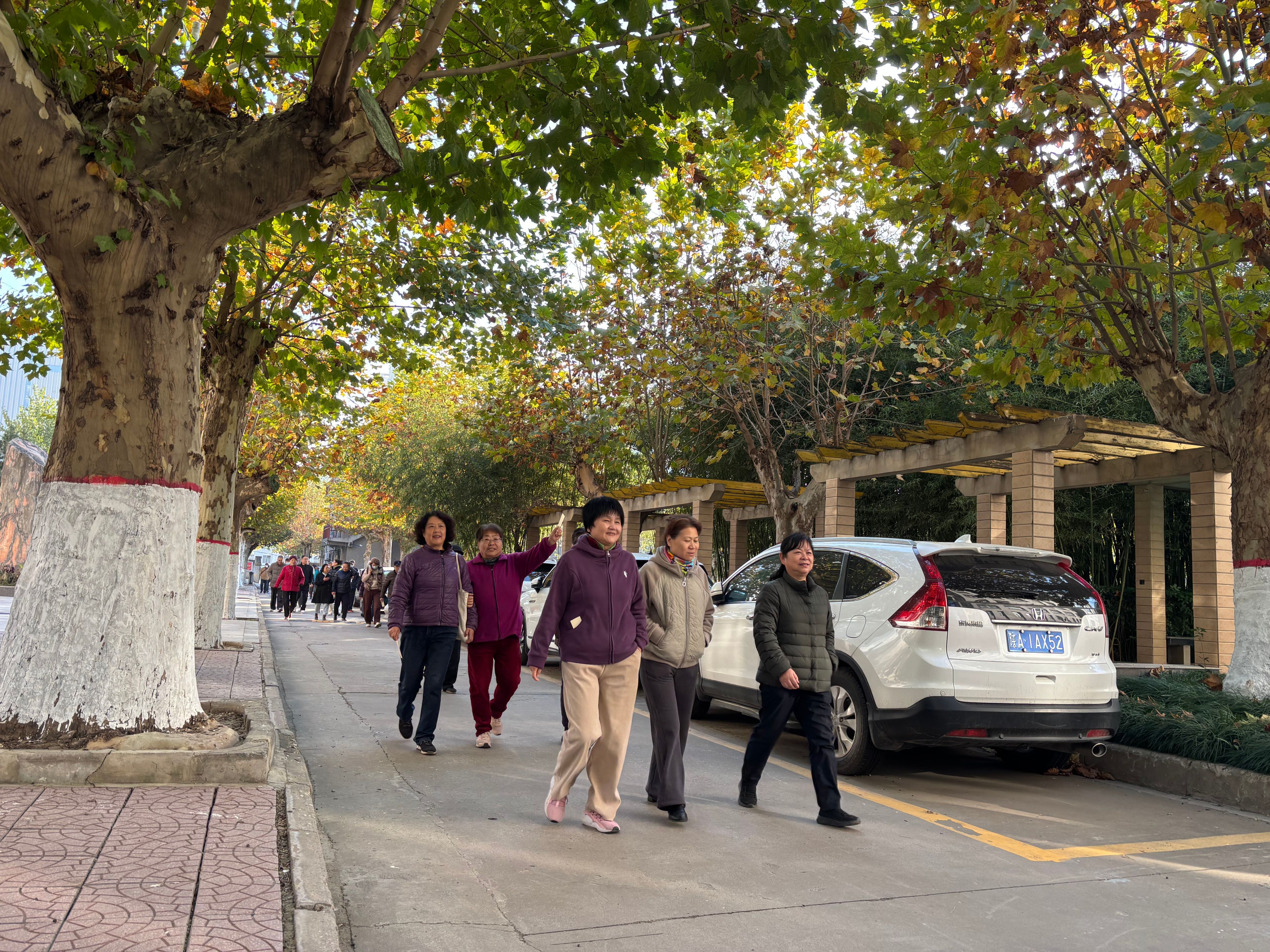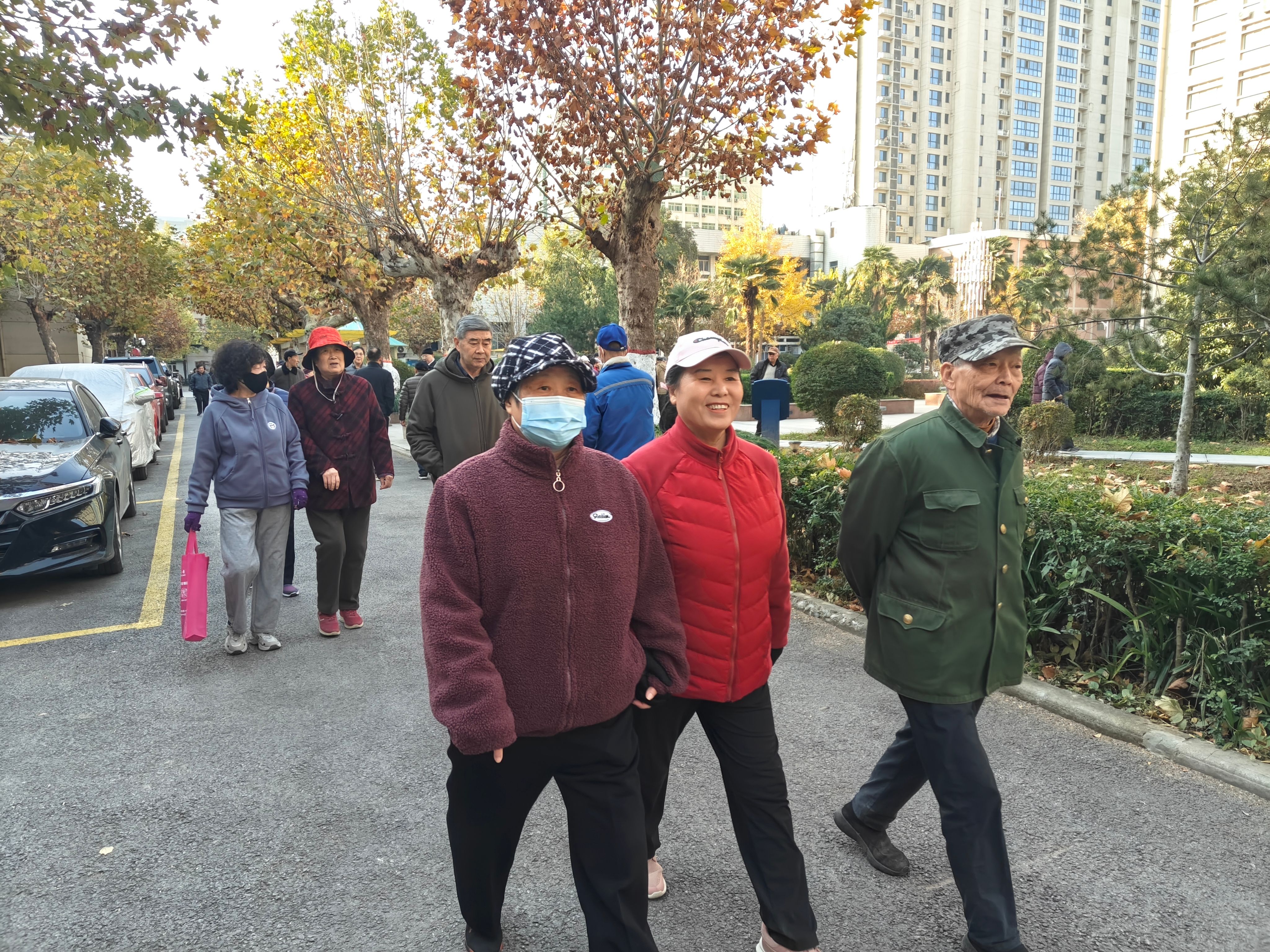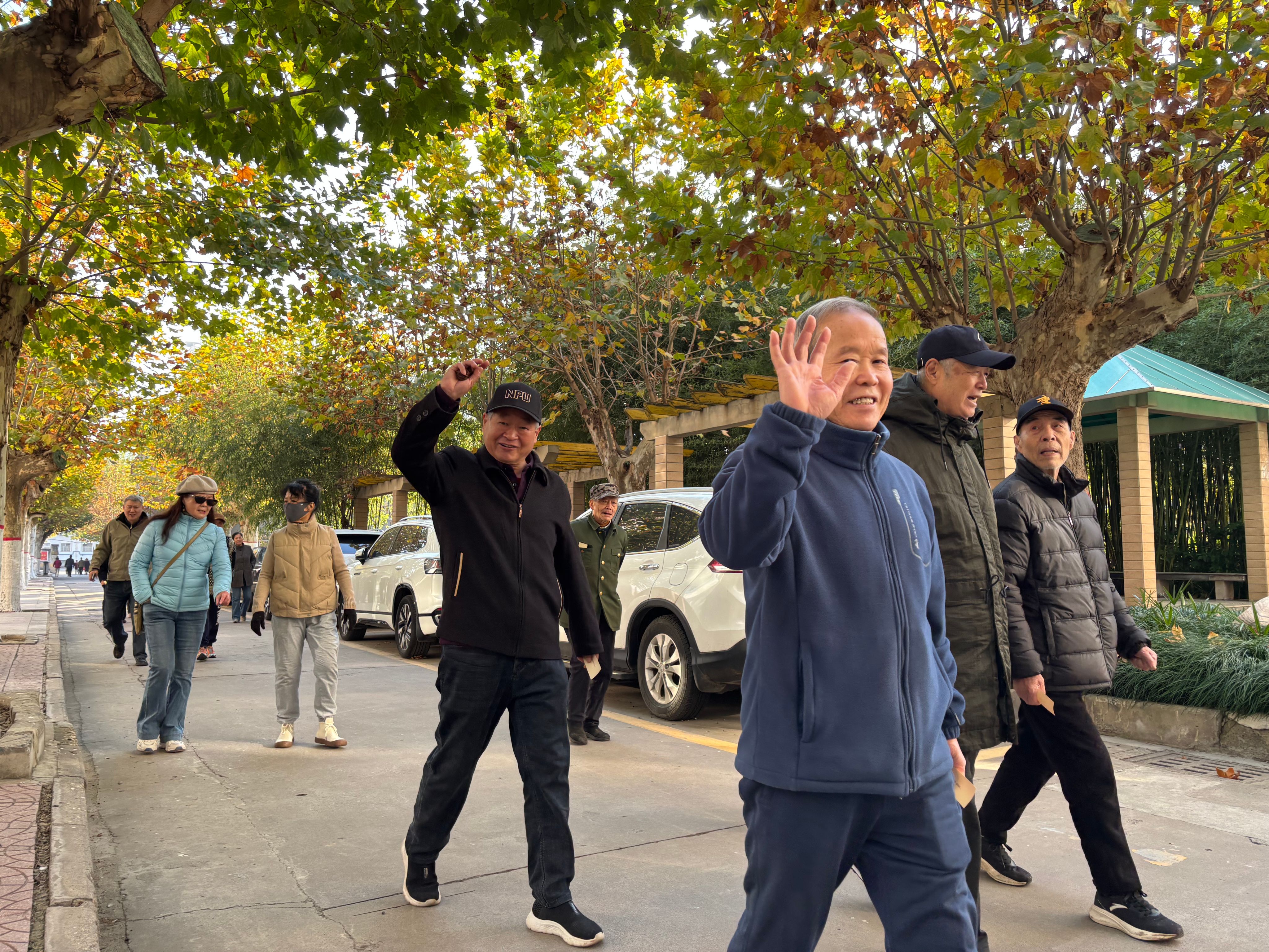 活动当天,天气晴朗,老同志们早早来到集合地点,许多校外居住的老同志也纷纷走进校园。健步走的队伍中,年过八旬的老教授依然步履矫健,退休多年的老同事久别重逢,夫妻携手同行,老友结伴而行。大家边走边聊,时而欢声笑语,时而驻足拍照,充分享受着运动带来的快乐。老同志们表示,这样的活动既锻炼了身体,又能和老同事们叙旧聊天,一举两得。