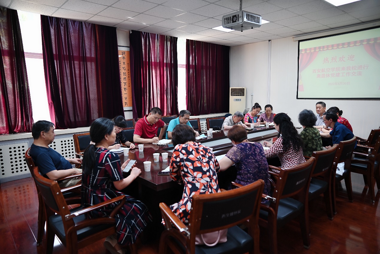 为深入贯彻落实陕西省委老干部局《关于进一步加强离退休干部党支部标准化规范化建设的指导意见》,加强离退休党支部建设。6月20日上午,离退休党总支书记邓北川、离退休工作处处长史正元及各支部书记一行9人赴西安文理学院离退休党总支学习交流。西安文理学院离退休党总支书记葛翠玲、离退休职工处处长童润涛及太白支部书记杨新莲等热情接待了邓北川一行并参加交流。