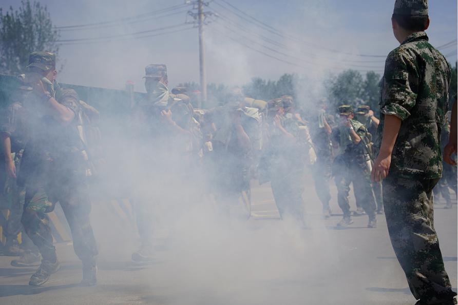 此次拉练行程共15公里,全程采用负重徒步行军,先后完成了“穿越毒气地带”“军事防空演练”“紧急战场救护”三项演练科目,拉练从阎良校区操场出发,先后经过迎宾北路、阎良公园等,最后到达阎良烈士陵园。