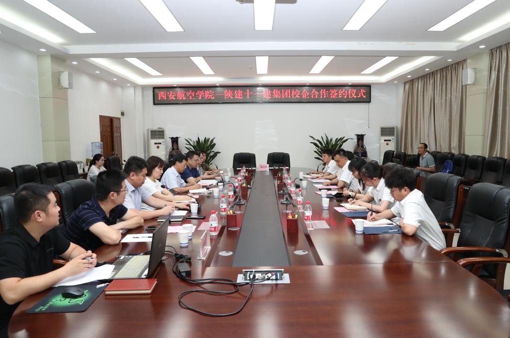 7月2日上午,伟德bv国际体育与陕建十一建集团校企合作签约仪式在莲湖校区教学楼九楼会议室举行。陕建十一建集团总经理刘红卫、副总经理王晓敏,伟德bv国际体育副校长宋文学,教务处处长吴晓葵、电子工程学院院长毕杨、能源与建筑学院院长杨亚萍、党总支书记曹国震及相关人员出席参加了仪式。仪式由曹国震主持。