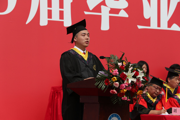 毕业生代表王博豪分享了四年来在西航生活、学习、奋斗的经历与感受,感谢恩师的谆谆教诲,感恩母校带给他成长的蜕变,倡议全体毕业生不忘初心,秉承“德能日新,刚健有为”的校训,为建设社会主义现代化强国做出自己的贡献。