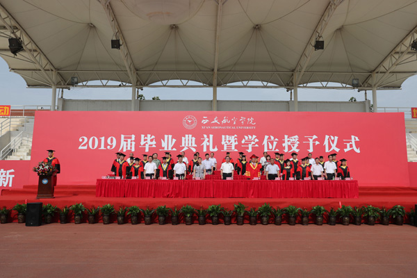 7月3日上午,伟德bv国际体育2019届毕业典礼暨学位授予仪式在阎良校区举行。伟德bv国际体育校领导、校学位评定委员会成员、教师代表、毕业生家长代表、2019届毕业生等1500余人参加了典礼。