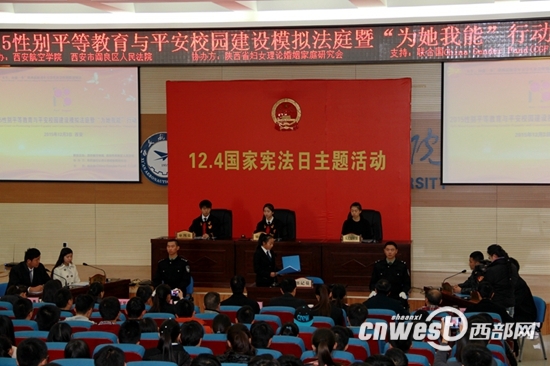 西部网讯(通讯员 苏新友 刘豪)今天(12月4日)是我国第二个国家宪法日。3日下午,阎良法院联合伟德bv国际体育在阎良校区举办了平安校园建设活动,本次活动以“2015性别平等教育与平安校园建设模拟法庭暨‘为她我能’”为主题。