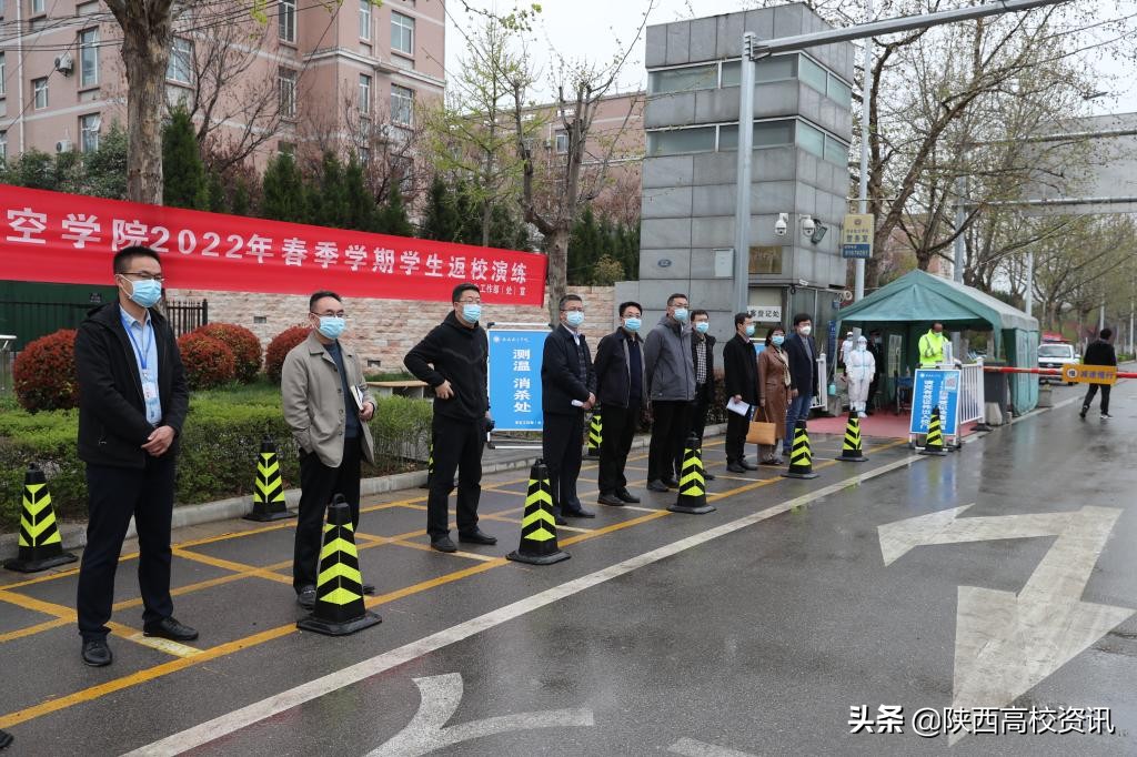 3月25日上午,伟德bv国际体育校领导曹庆年、刘谦、宋文学、宁永录带队,党政办公室、党委组织部、党委宣传部、人事处、纪委综合室、学生工作处、教务处、保卫处、后勤保障处、校医院等部门负责人,对阎良校区2022年春季学期学生返校准备工作进行专项检查,西安航空基地管委会防疫办赵斌等同志到场观摩督导。