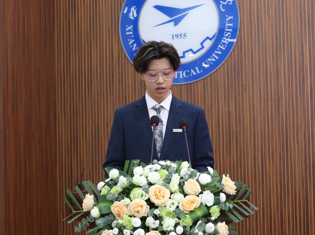 计算机学院软件工程211班邬竞择同学代表高年级同学在发言中分享了西航学子努力学习、不断拼搏、勇于担当、追梦筑梦的奋斗历程。