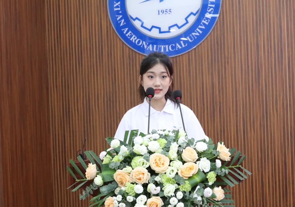 经济管理学院航空服务艺术与管理222班王欣奕同学代表全体新生在发言中表达了不负青春、不负韶华、不负时代、立志成才的坚定决心。
