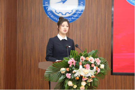 教师代表张阳发言时表示,要坚持终身学习,不断增进自己的学术深度,在民航学院的新舞台上用新视野、新智慧、新方法,肩负起培养高素质人才的神圣使命。