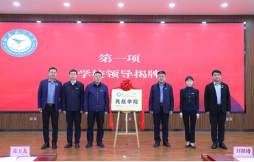学校领导为“民航学院”揭牌。
