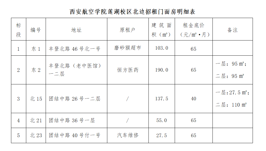 2.项目名称:2022年(第一期)莲湖校区北边部分门面房招租项目