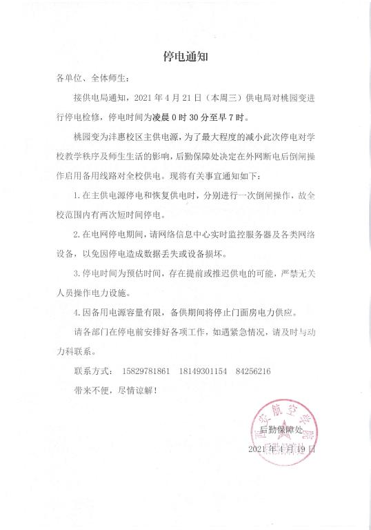 停电通知(2021年4月19日)