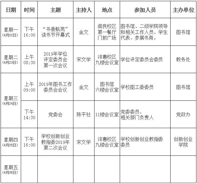 2018/2019学年第二学期第 9 周主要会议活动安排