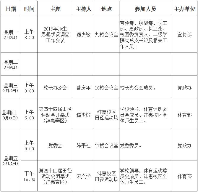 2018/2019学年第二学期第 7 周主要会议活动安排