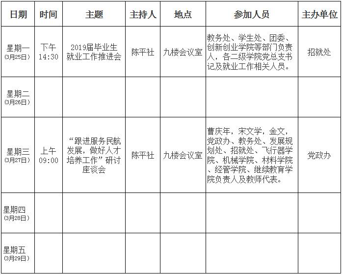 2018/2019学年第二学期第 5 周主要活动和会议安排