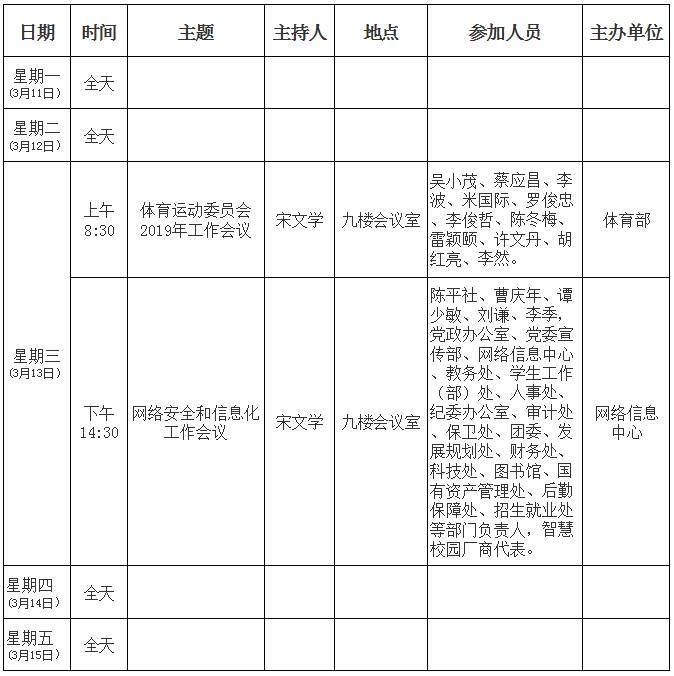 2018/2019学年第二学期第 3 周主要活动和会议安排