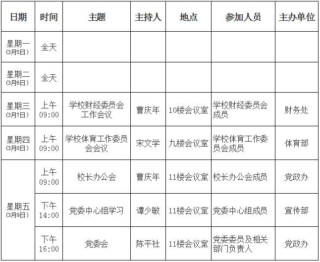 第1周主要会议及活动安排