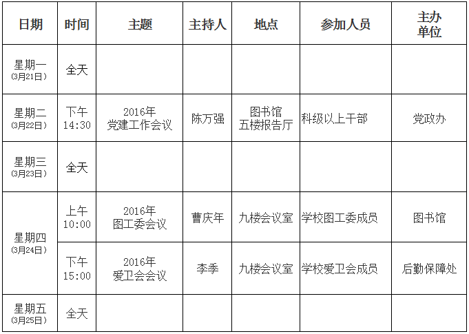 伟德bv国际体育2015/2016学年第二学期第4周主要会议活动安排表