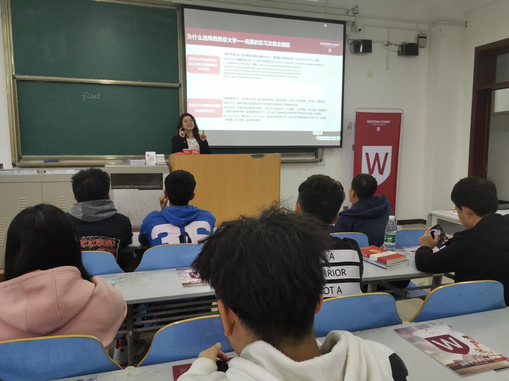 10月23日,澳大利亚西悉尼大学来访,并做了澳大利亚、新西兰留学专场讲座,分享了澳大利亚、新西兰留学热门专业的选择、奖学金申请的技巧以及在澳、新留学过程中会遇到的各种问题的应对策略等。讲座现场,西悉尼大学校方代表针对同学们感兴趣的留学资质及奖学金申请条件等问题进行了一对一答疑和指导,同学们积极互动,反响强烈。